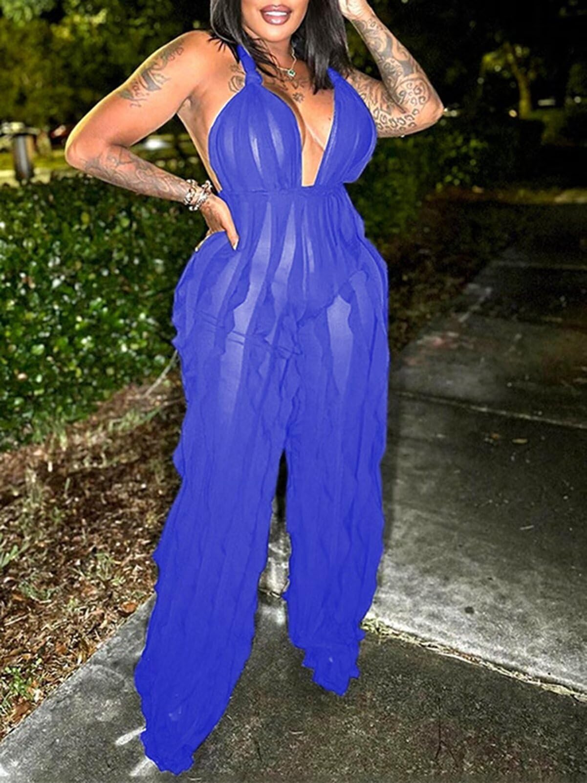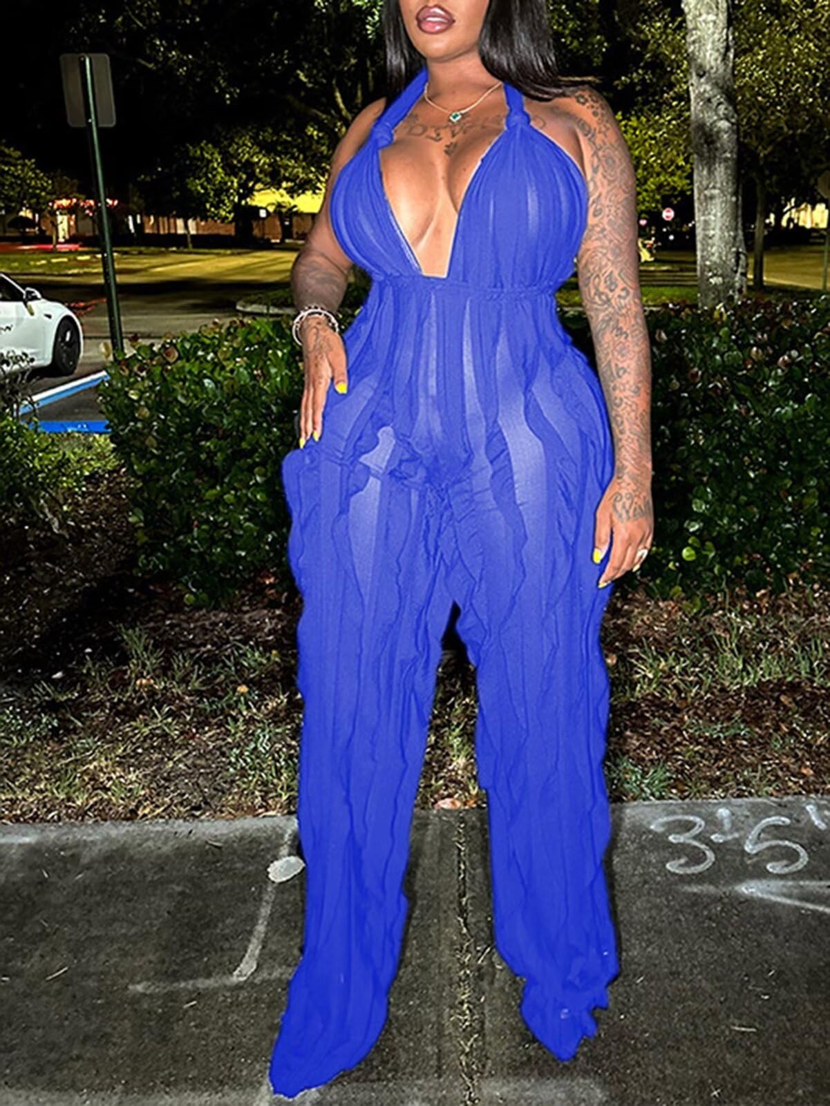 | v neck jumpsuits | Blue | X-Large | 2 |