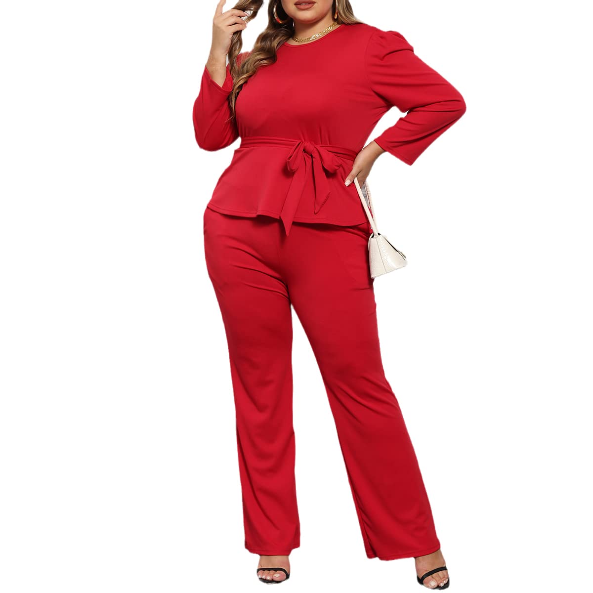 Plus size pant suit for women Red X-Large 16