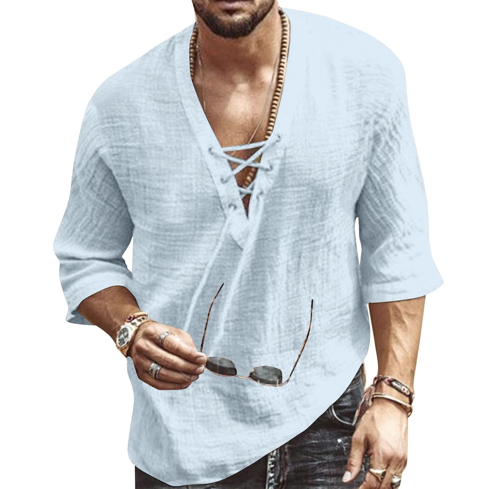 Men's Fashion Shirt Short Sleeve blue Medium 1