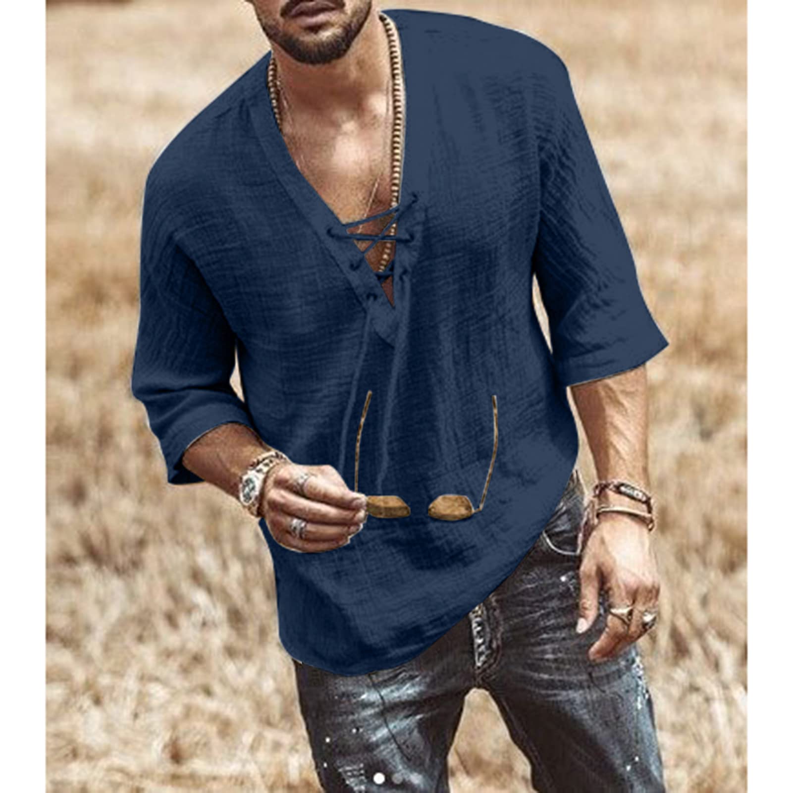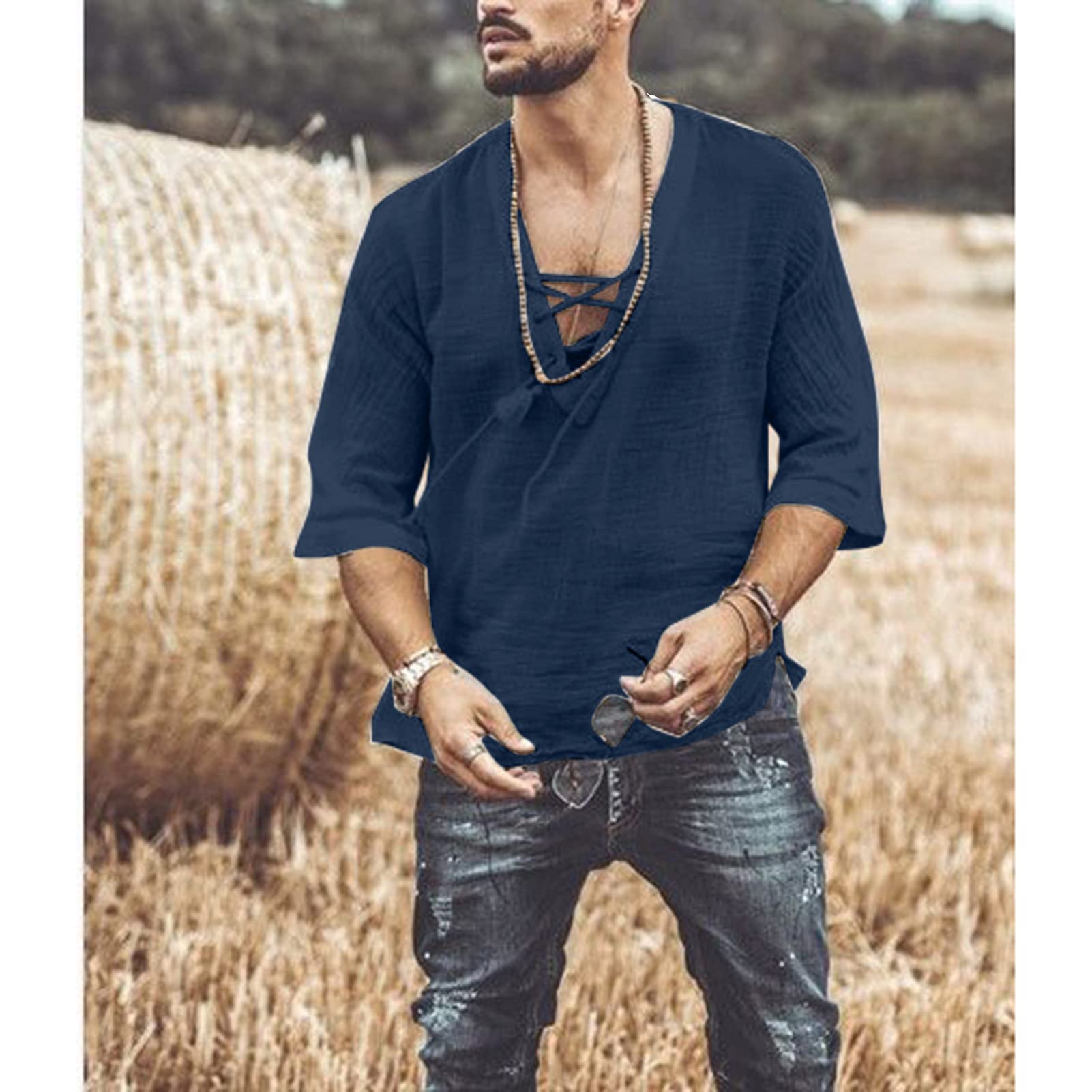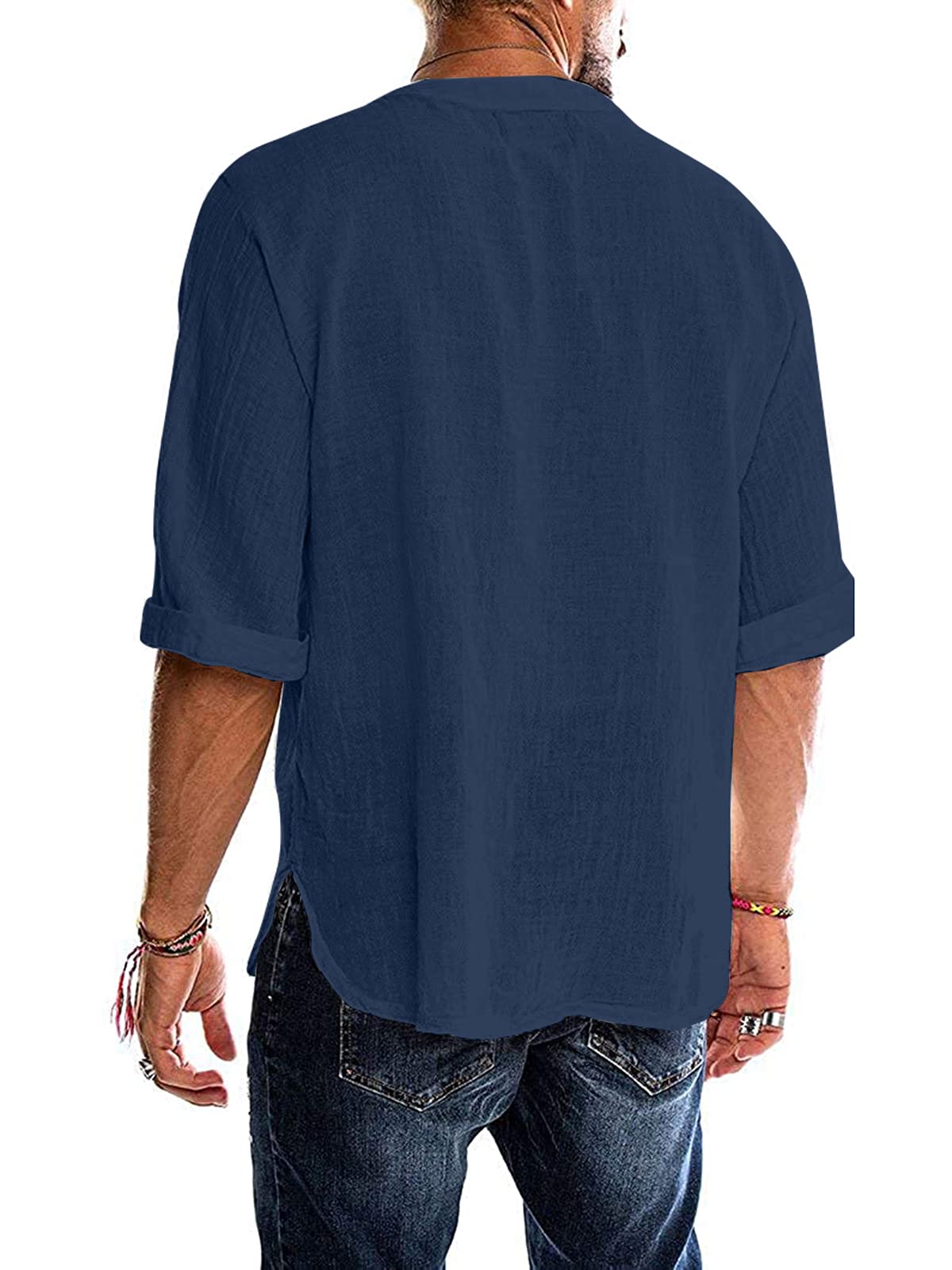 Men's Fashion Shirt Short Sleeve Solid Dark Blue Medium 5