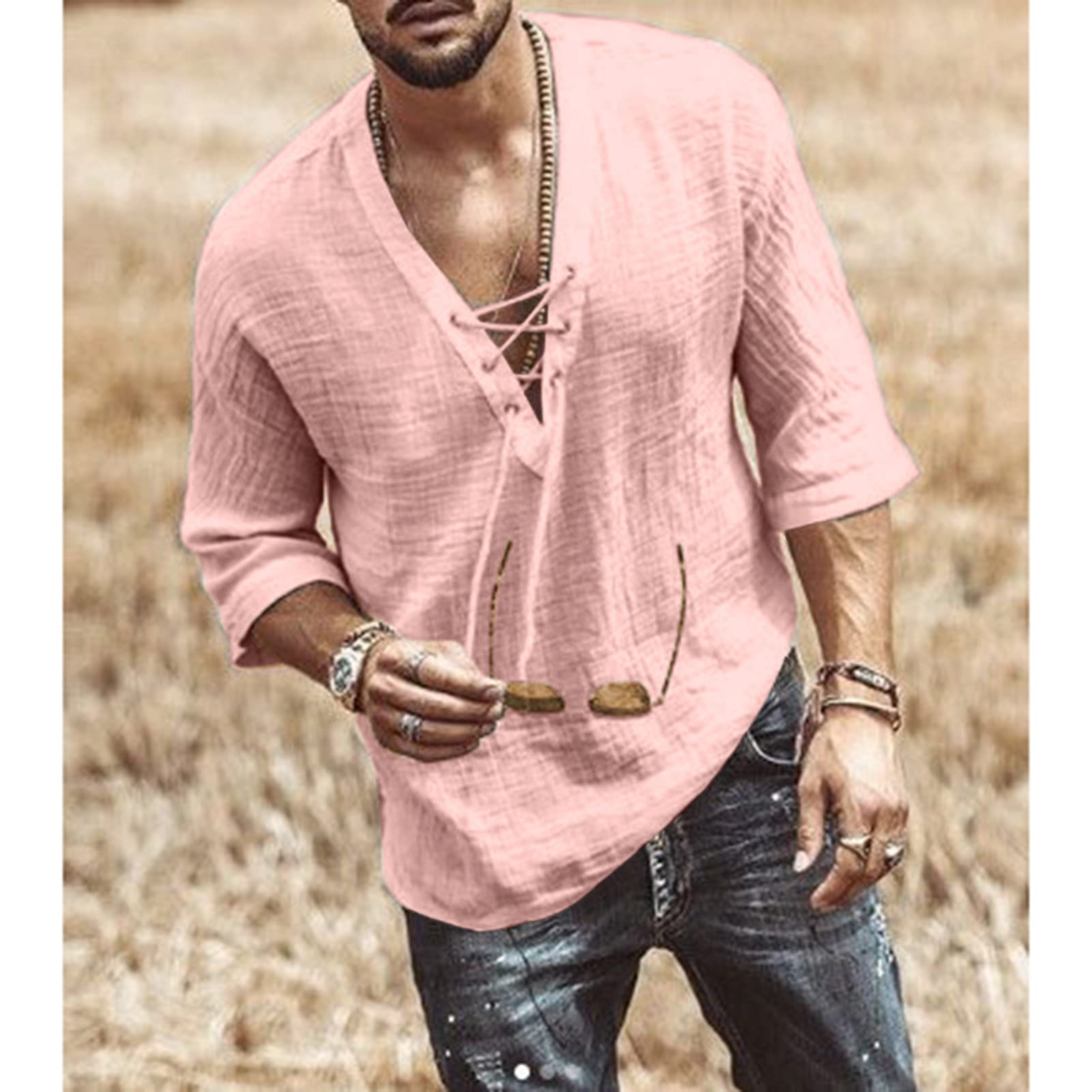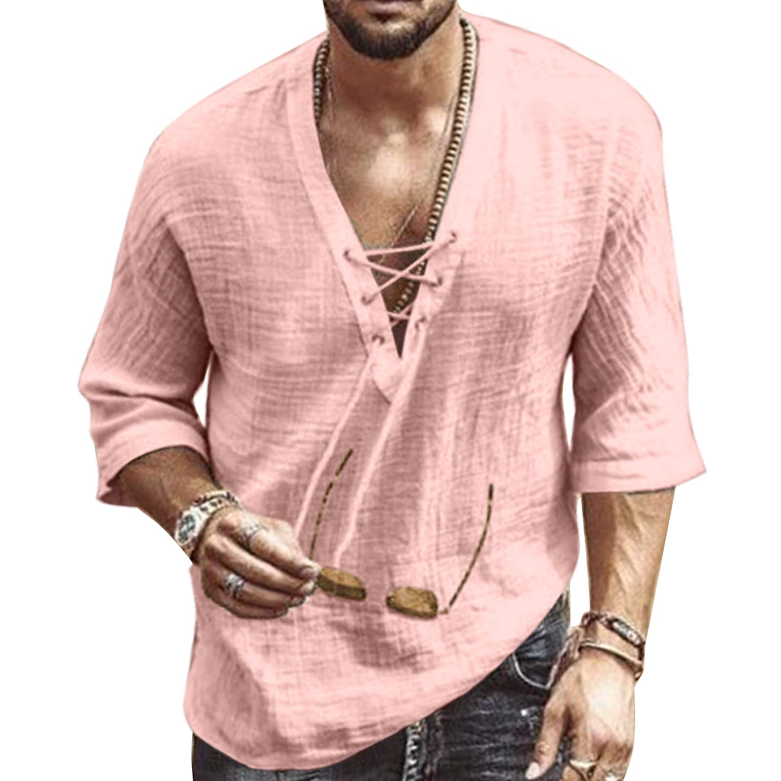 Men's Fashion Shirt Short Sleeve Solid Pink X-Large 1