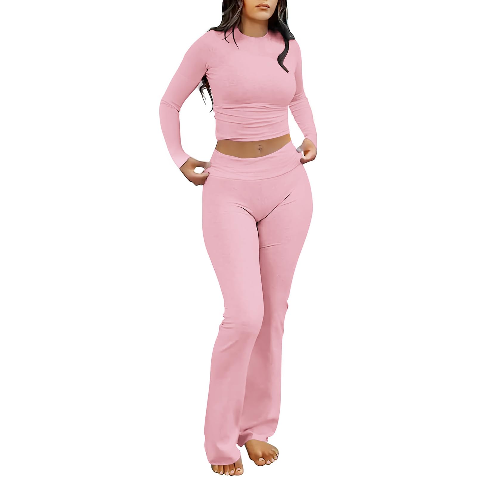 Women's 2 Piece Lounge Outfits Pink Large 9