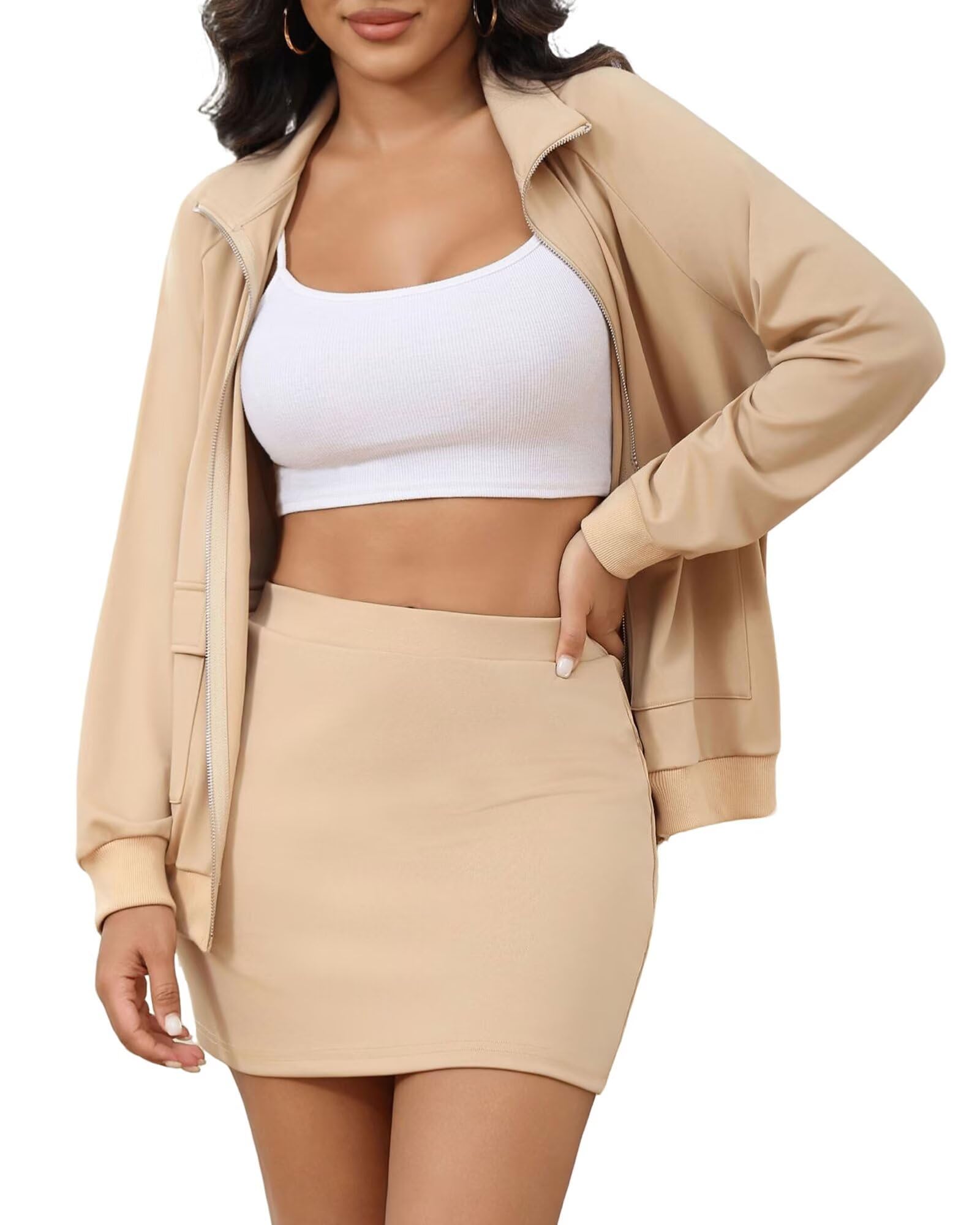 | Zipper Jacket and Mini Skorts Suit | Khaki | Small | 1 |