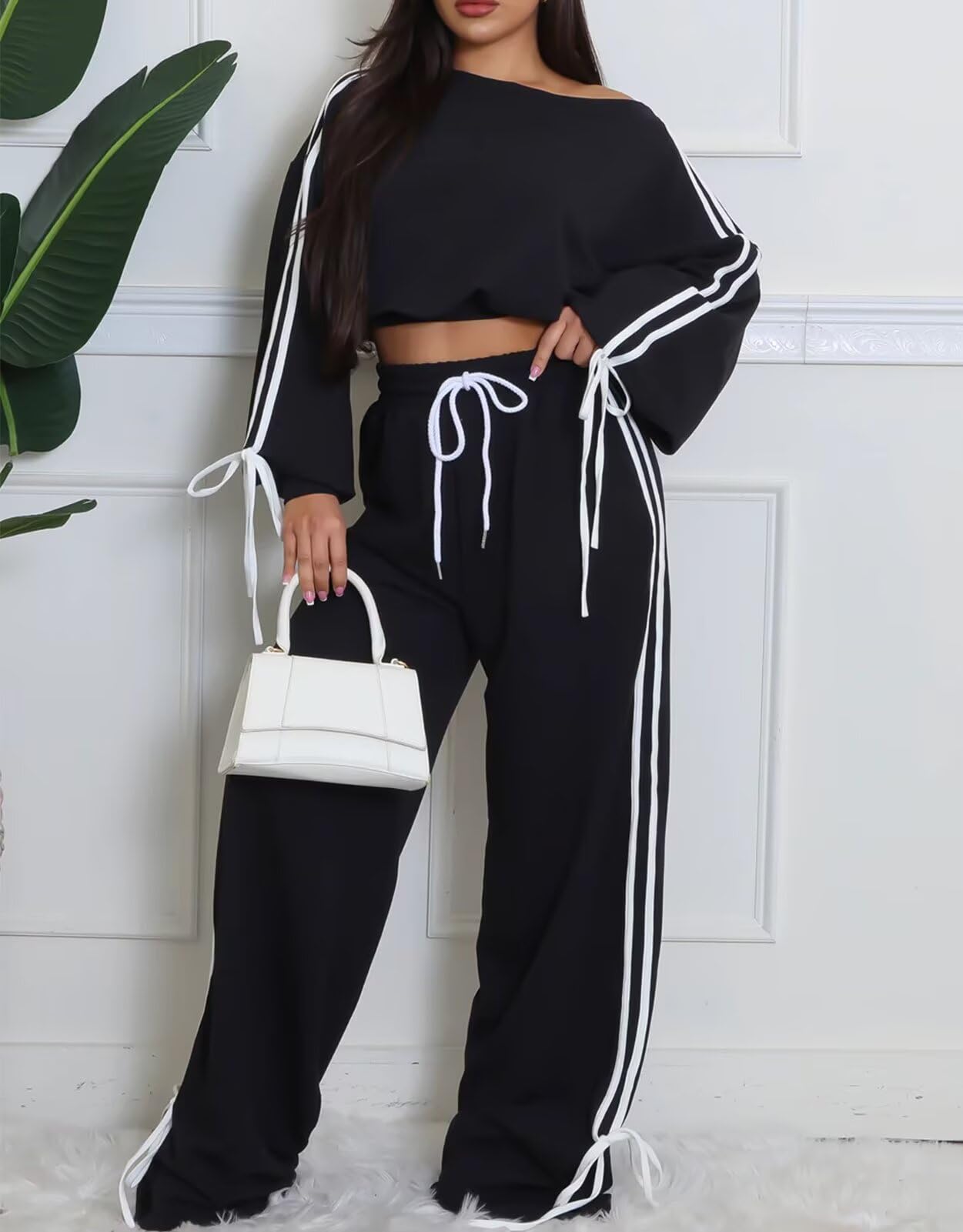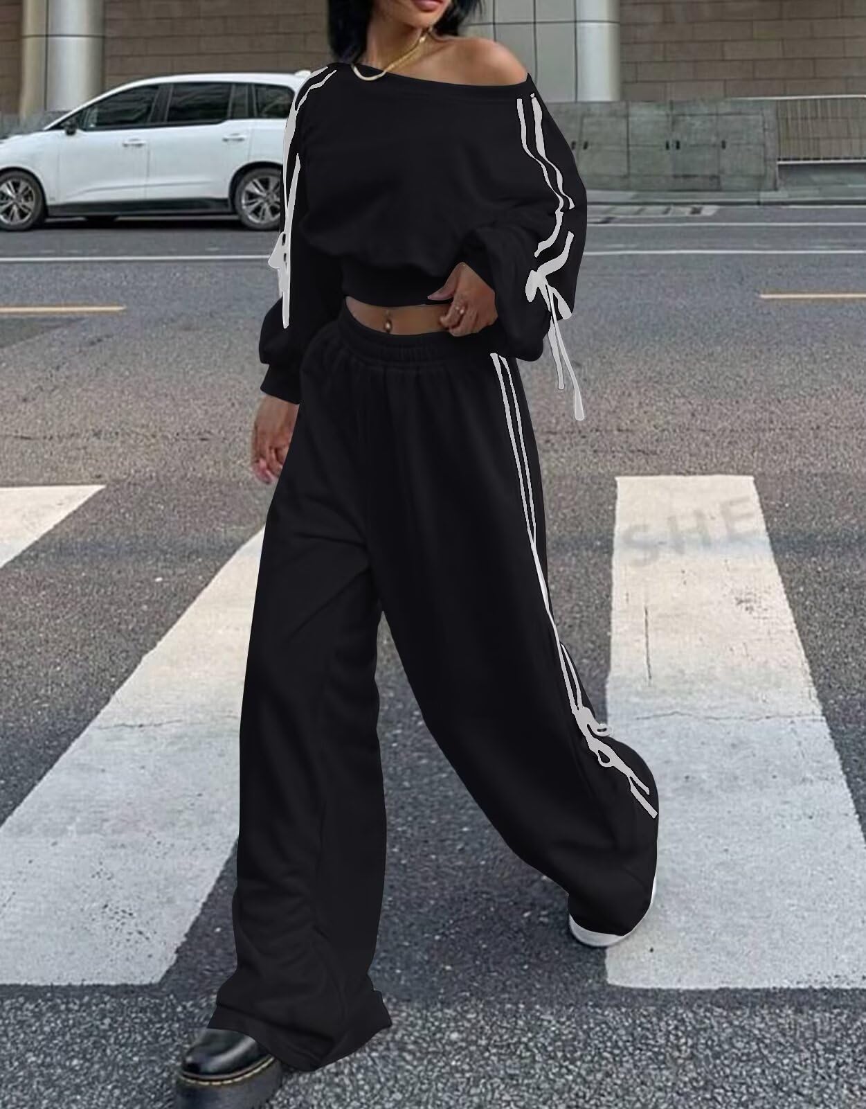 Womens 2 Piece Off Shoulder Outfits Black X-Large 9