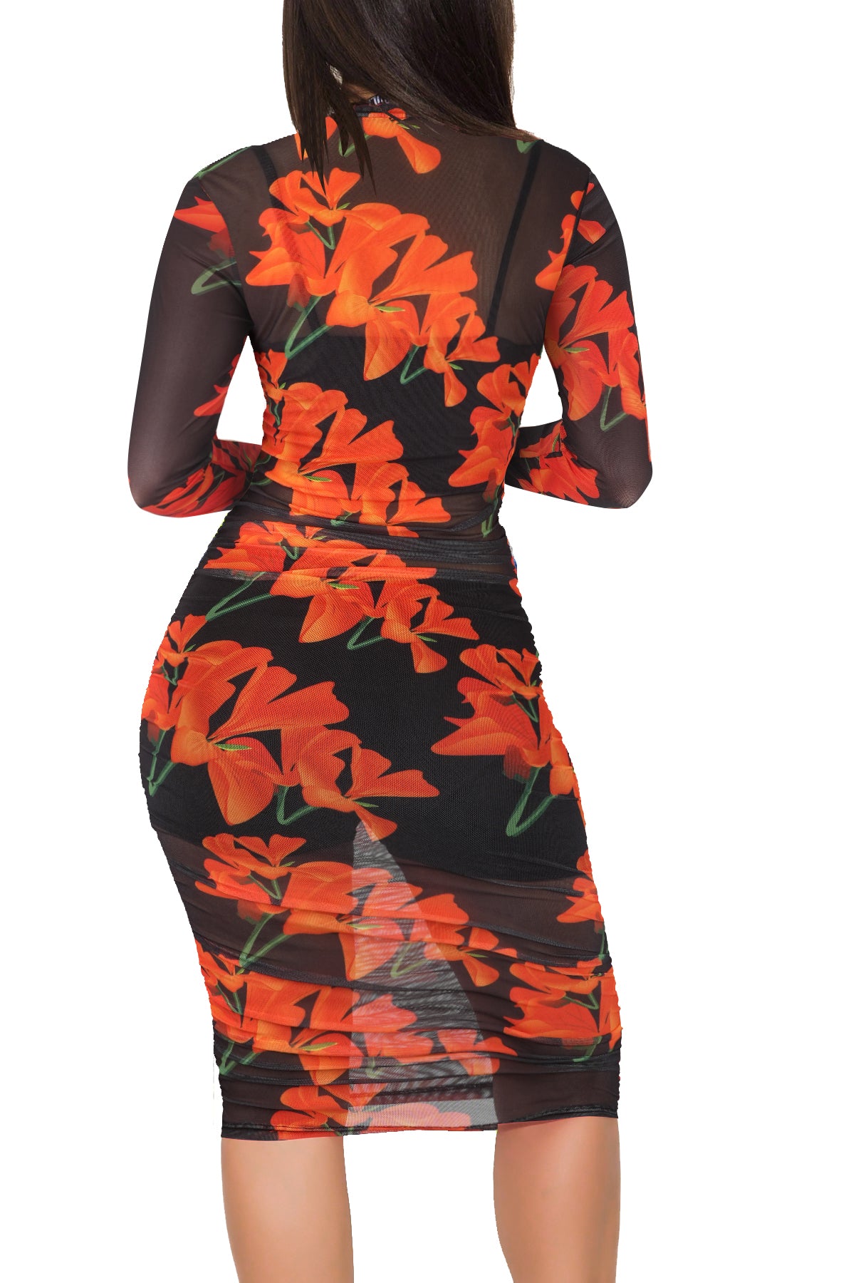 Mesh 3 Piece Dress Sets Cover Up Red Large 2