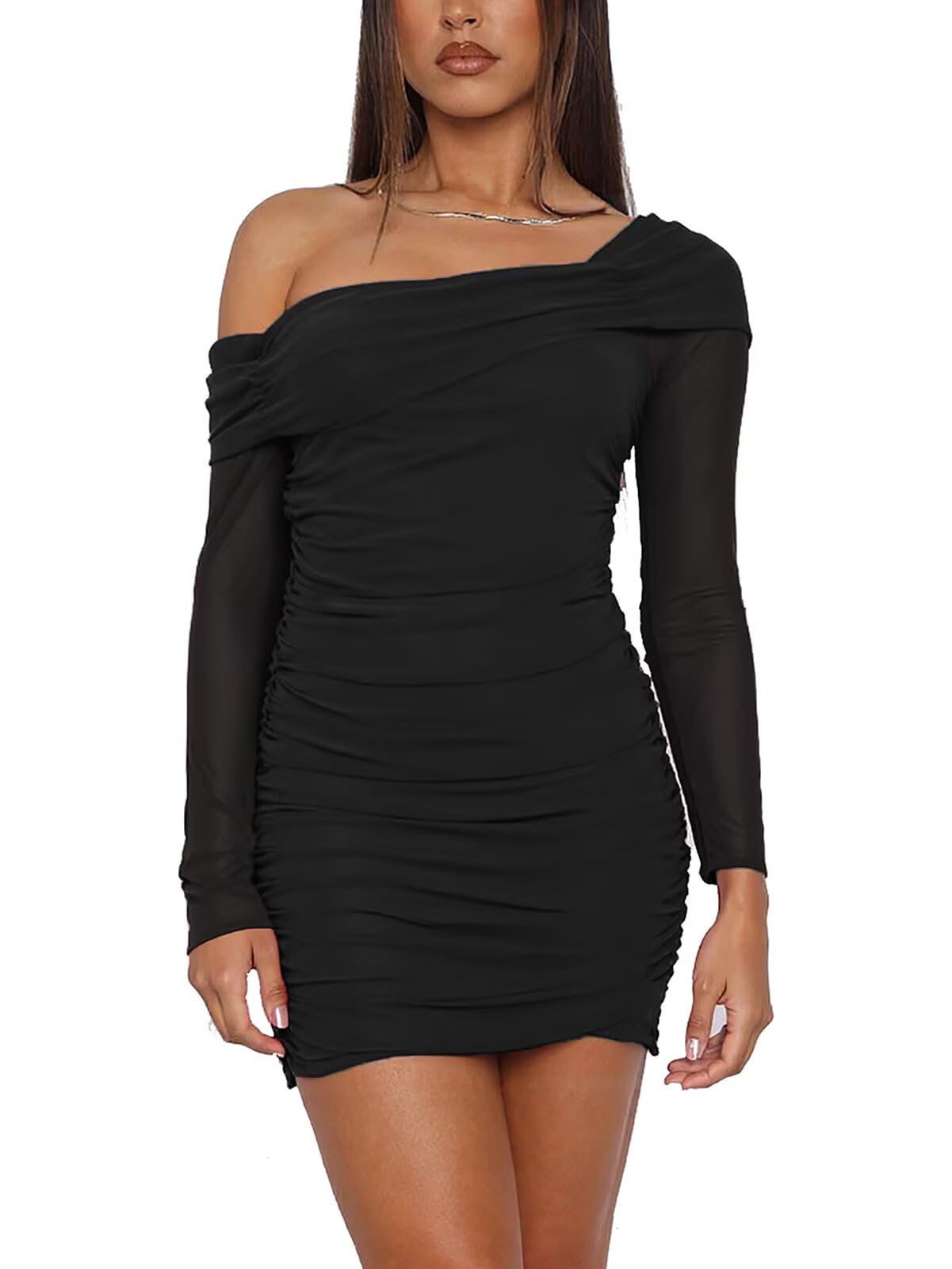 Sheer Mesh Ruched Night out Dress Black XX-Large 3