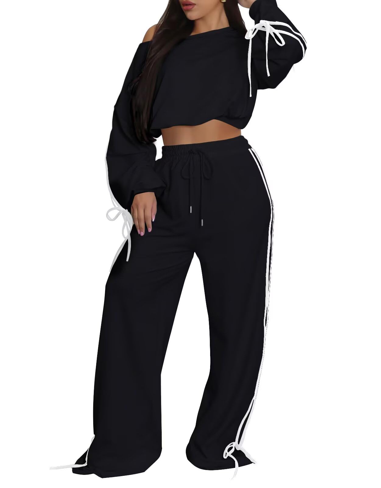 | Women Casual 2 Piece Tracksuit Set | Black | Large | 1 |
