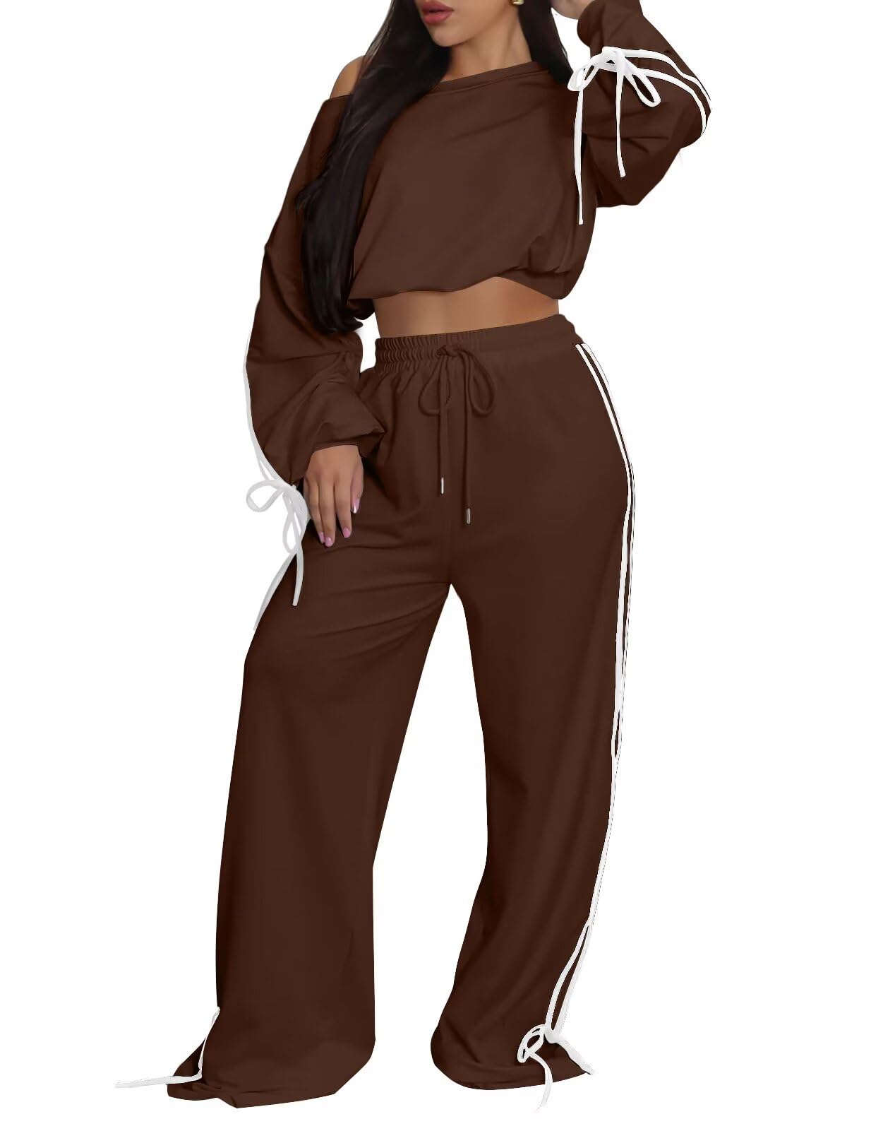 | Women Casual 2 Piece Tracksuit Set | Coffee | X-Large | 2 |