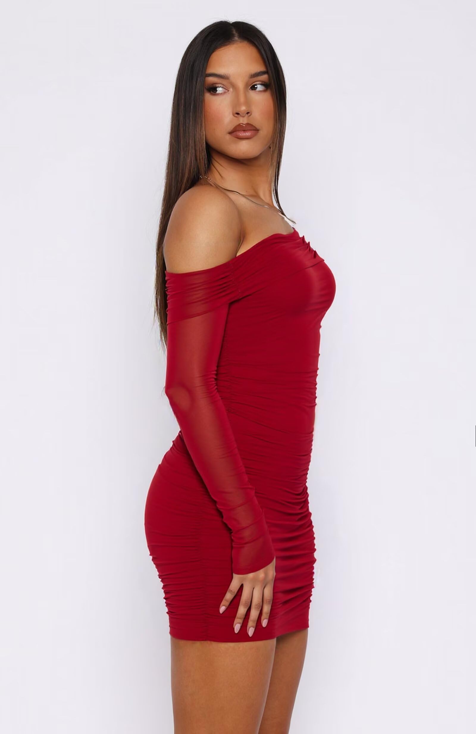 | Off Shoulder Mesh Pleated Dress | Burgundy | Small | 1 |