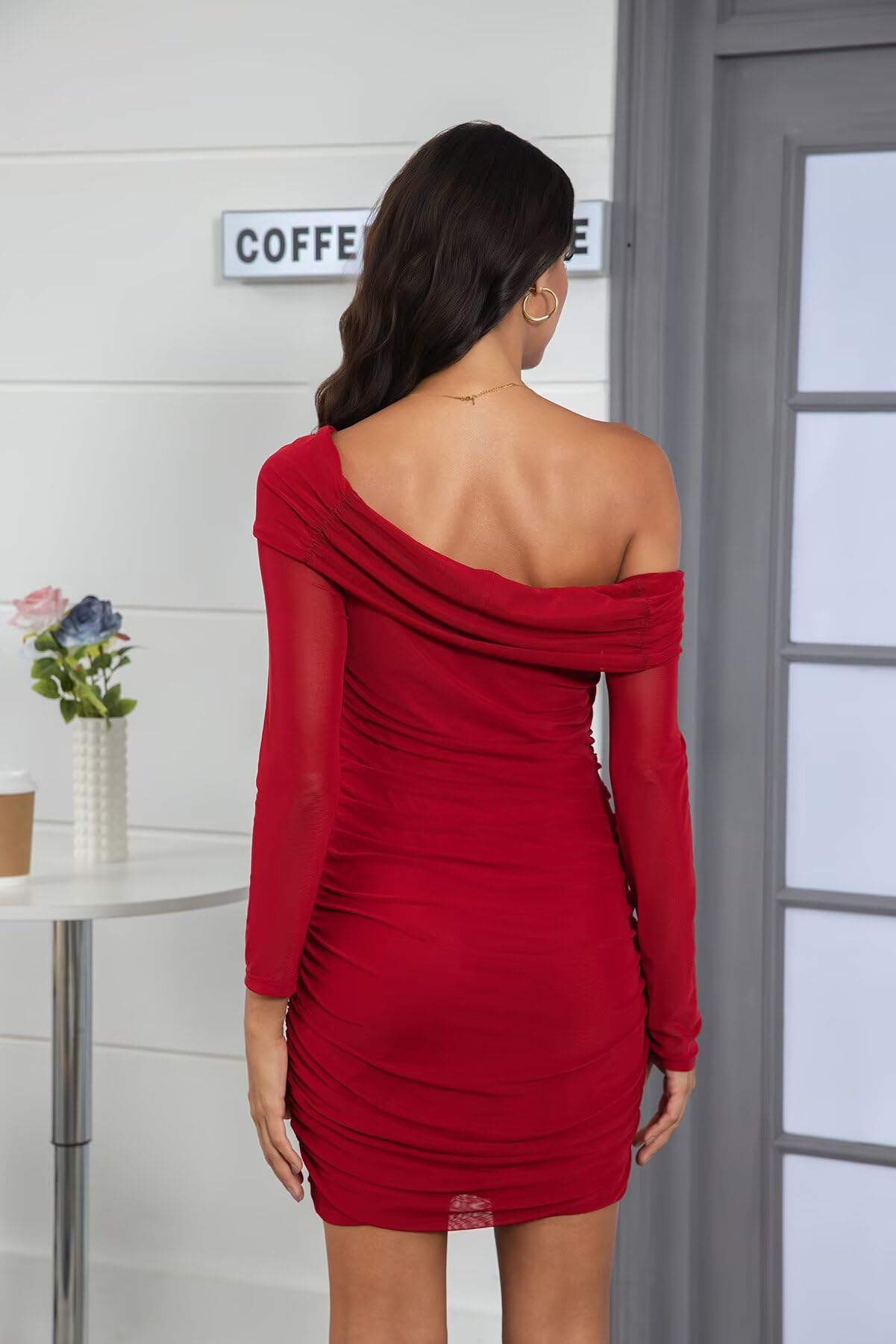 | Off Shoulder Mesh Pleated Dress | Burgundy | XX-Large | 1 |