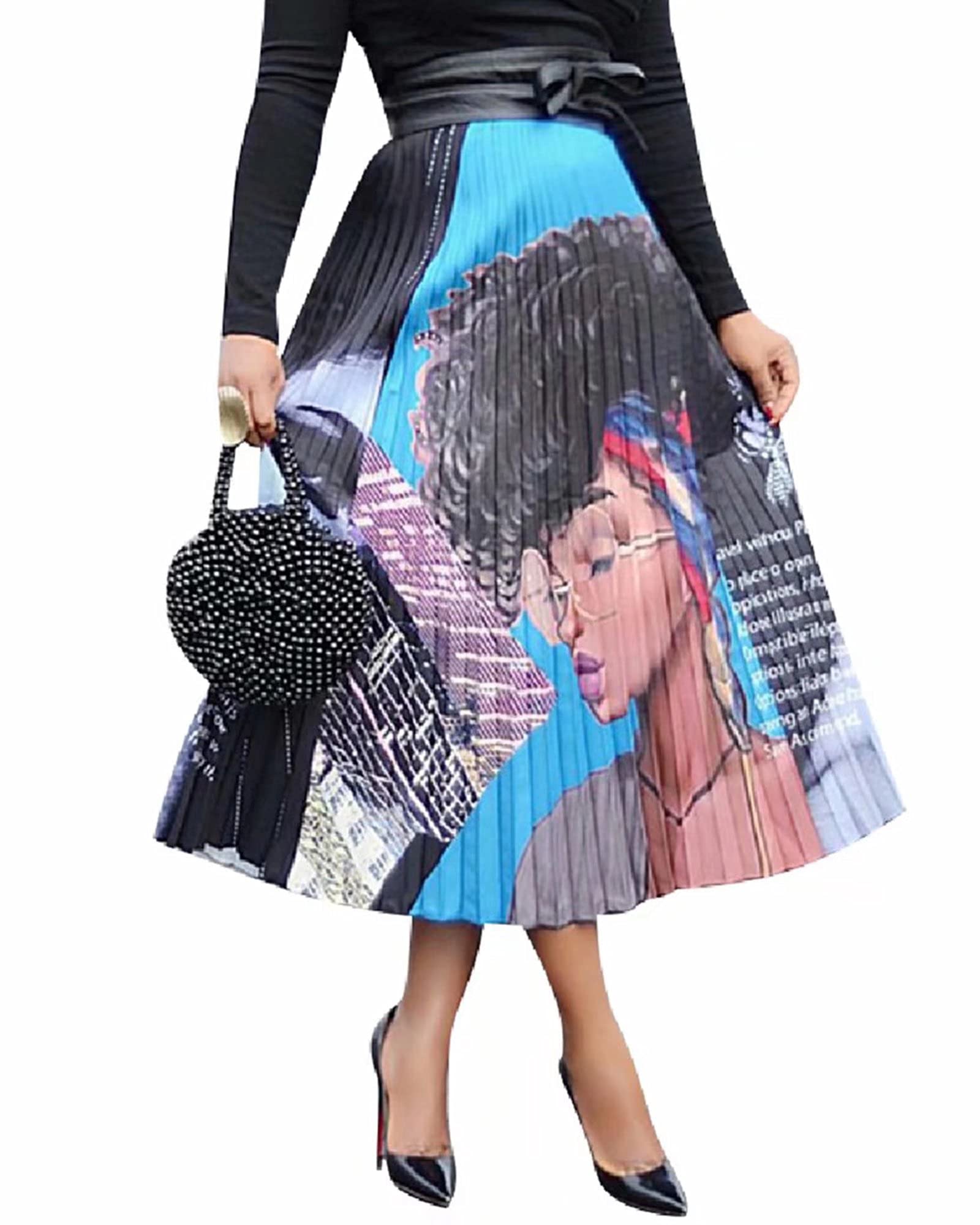 Women's Graffiti Pleated Skirts A# Lady Large 2