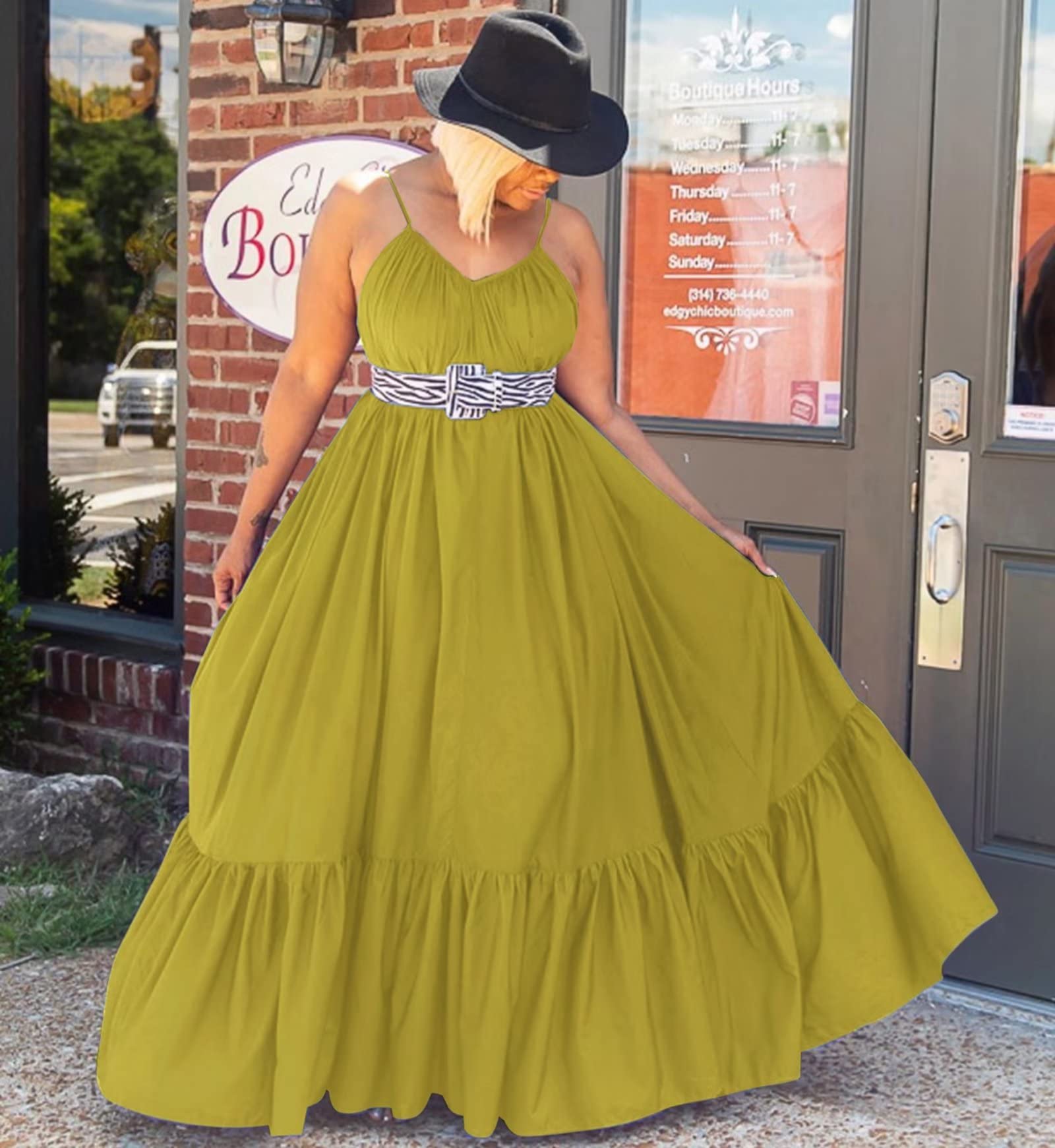 Spaghetti Strap Ruffle Maxi Dress Yellow 3X-Large 1