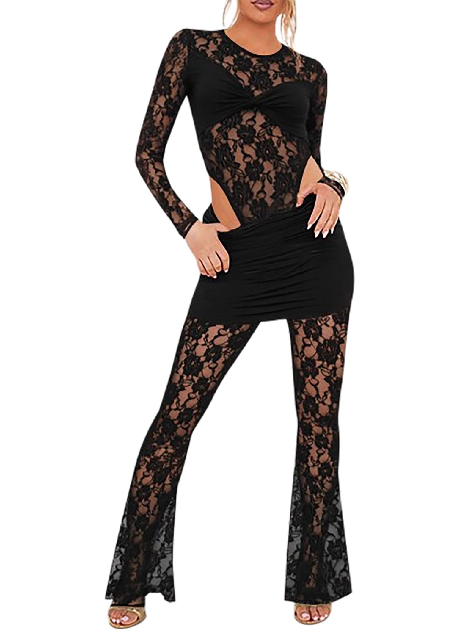 | women sexy lace 2 piece outfits | Black | Medium | 4 |