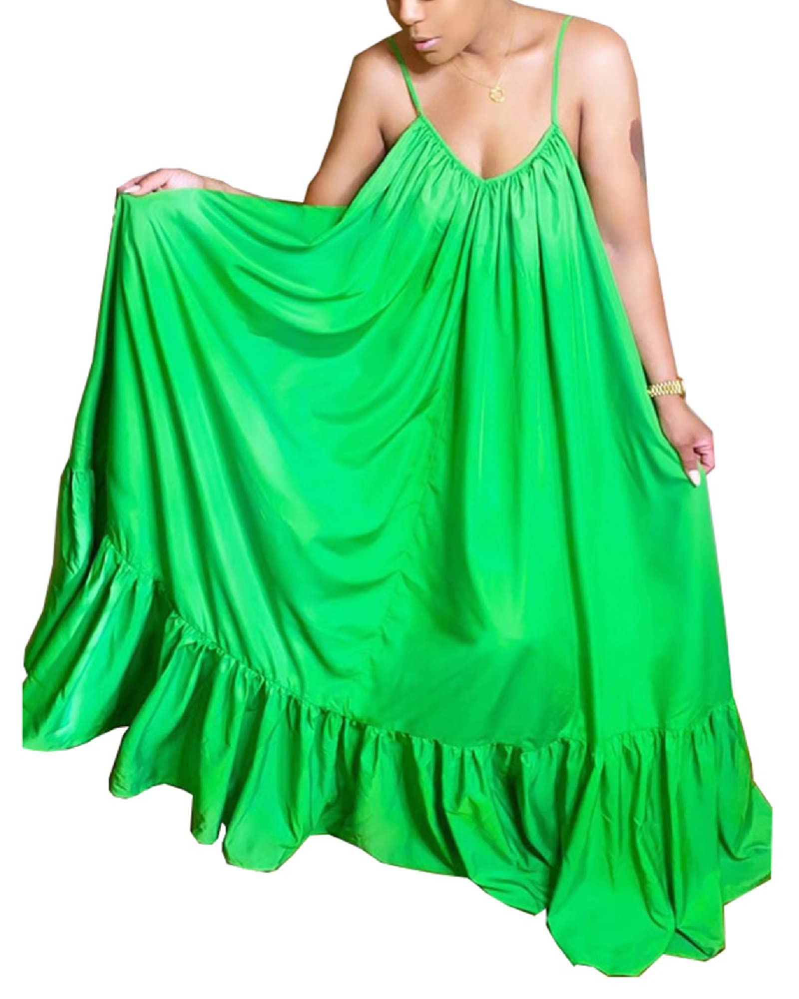 Spaghetti Strap Ruffle Hem Maxi Dre Green Large 1