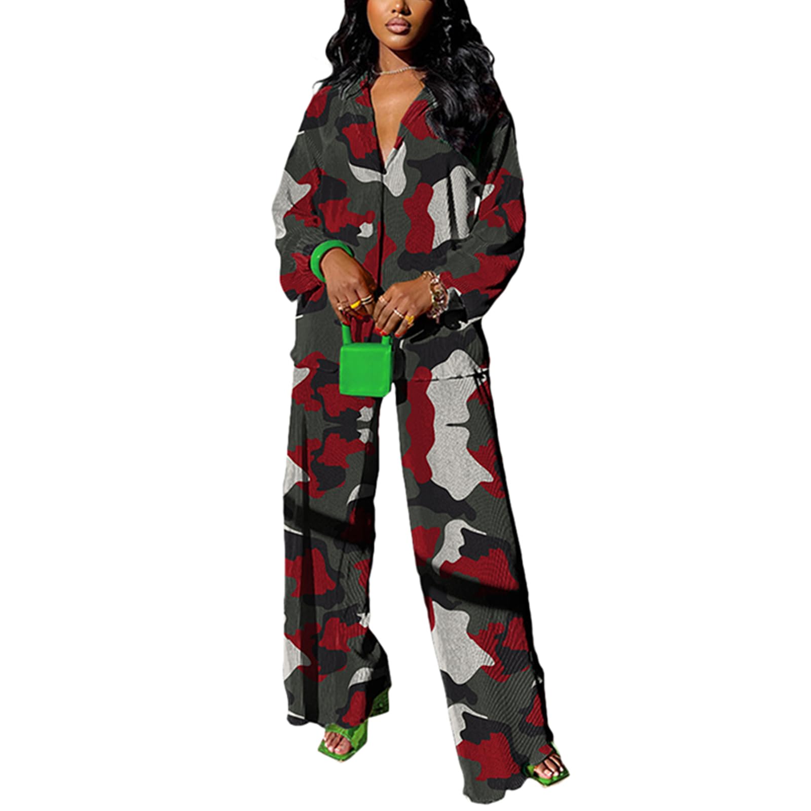 | Casual 2 Piece Outfit for Women | Camo Red | X-Large | 4 |