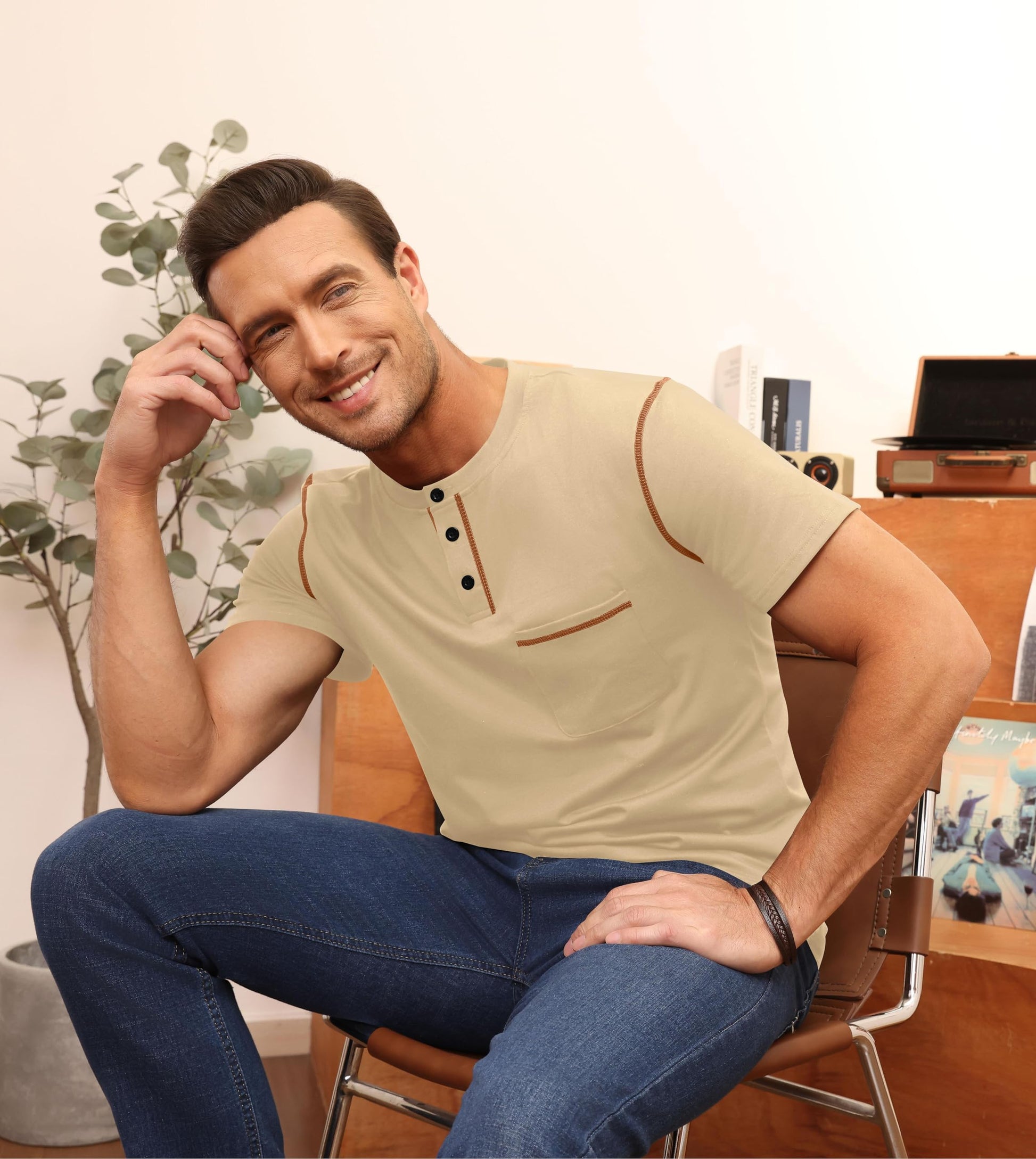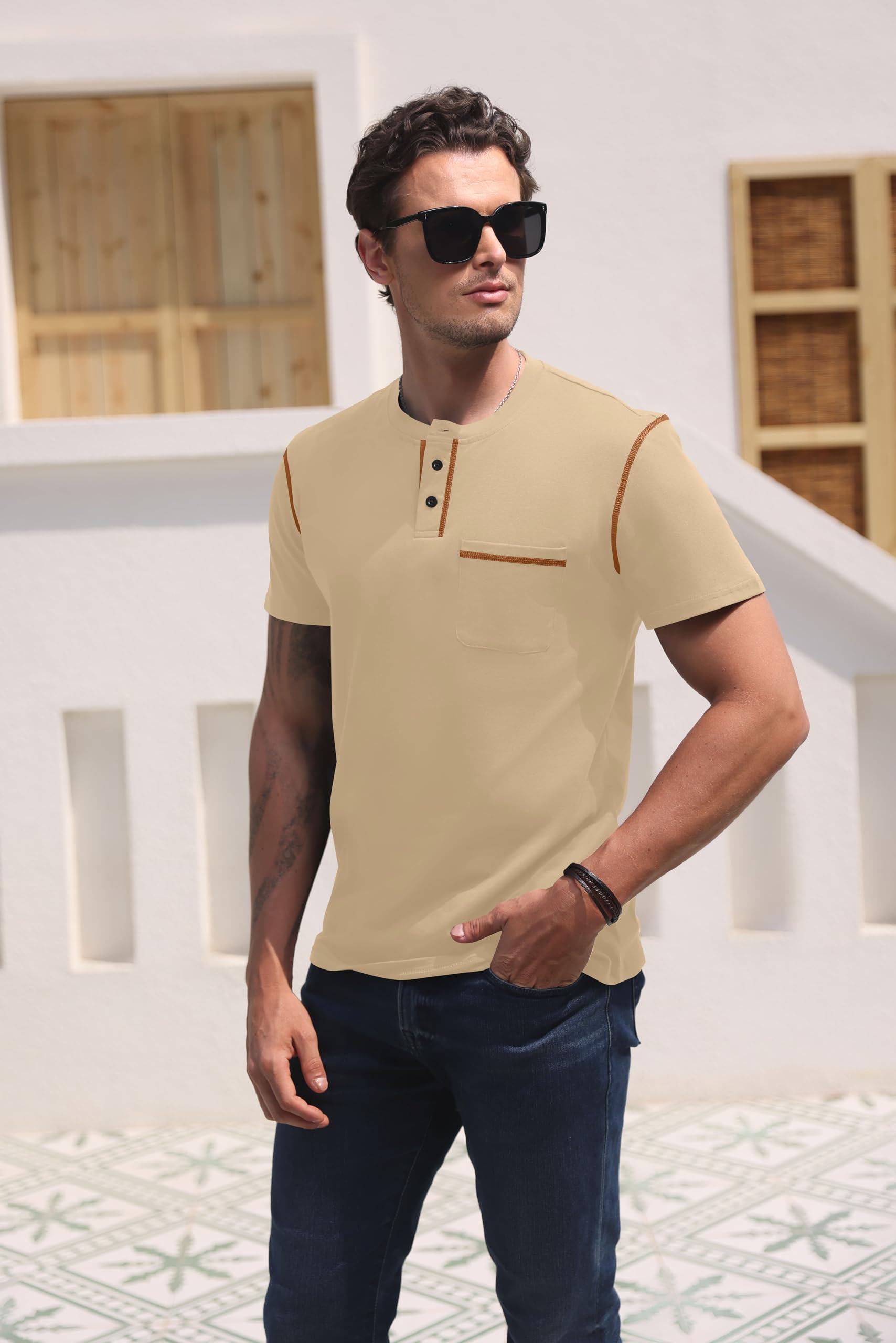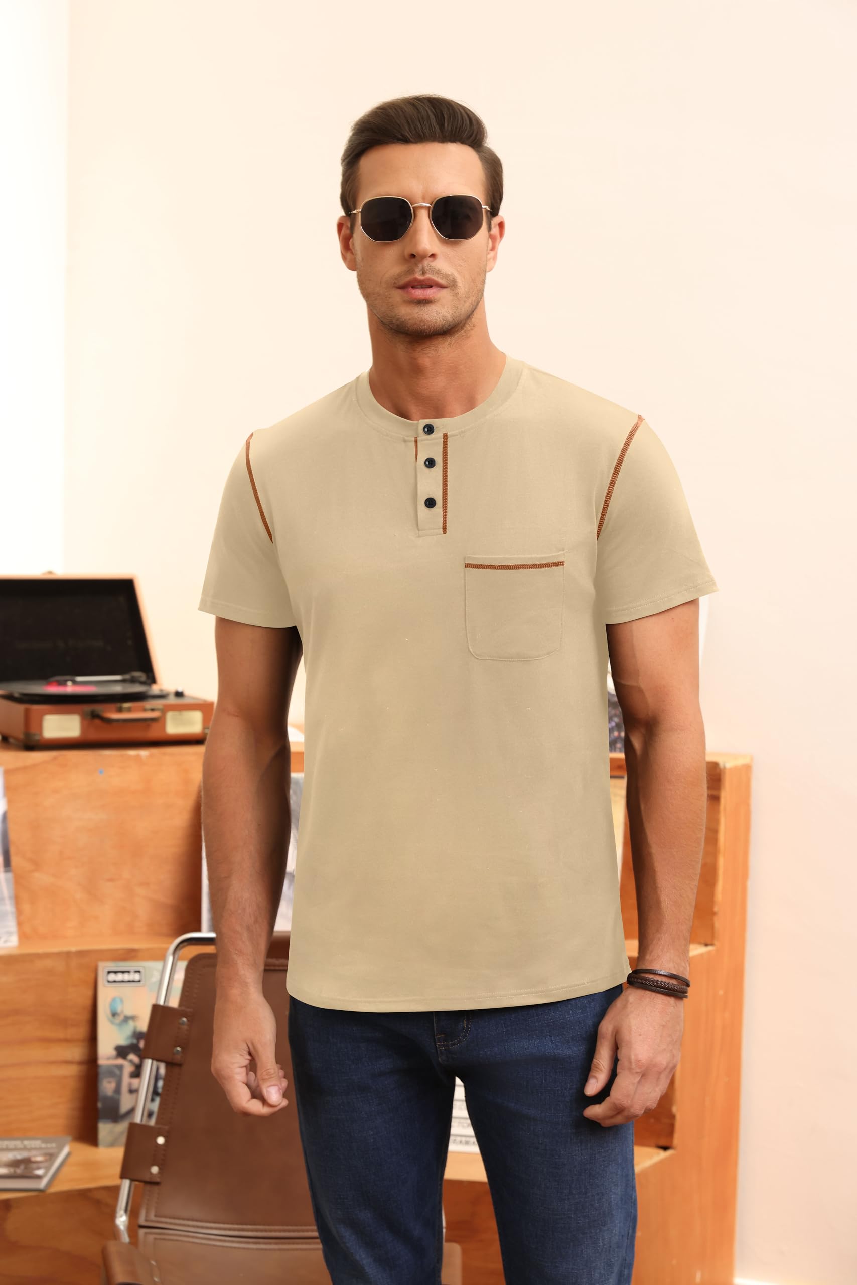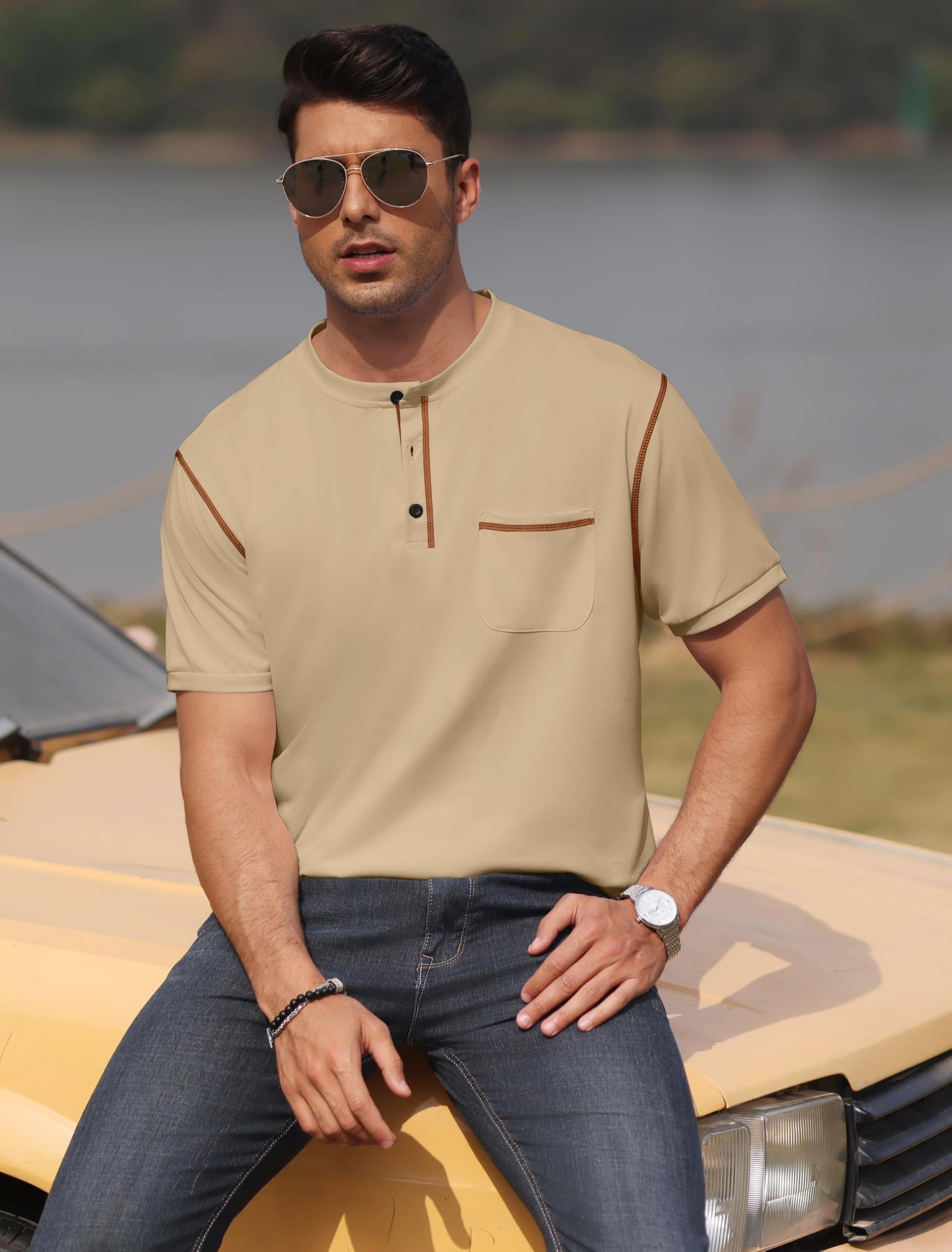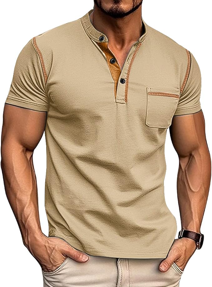 Henley Shirts, Slim Fit T-Shirt Khaki XX-Large 8