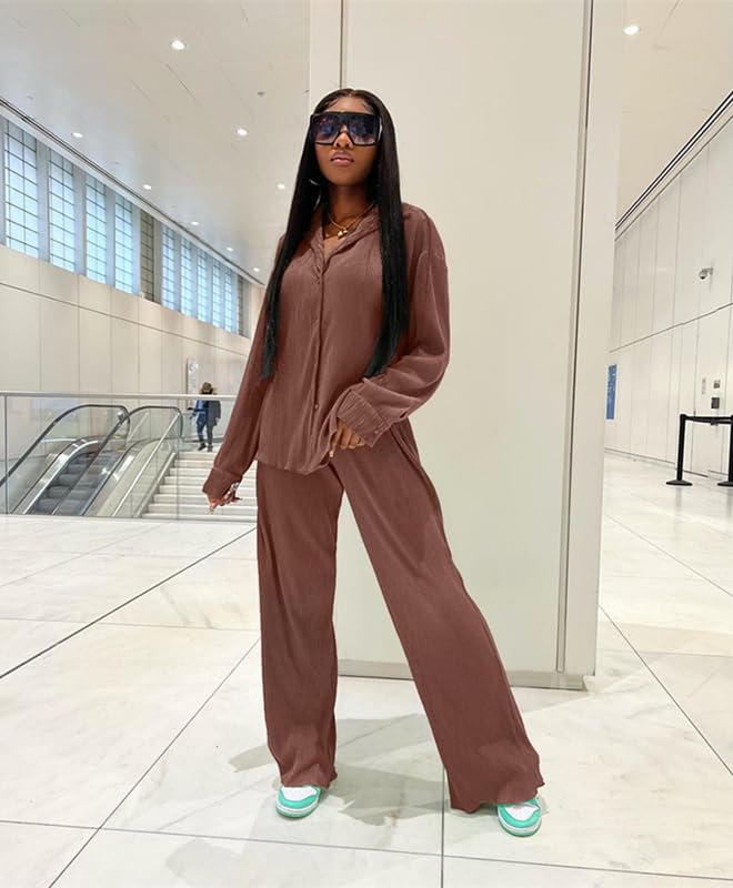 Casual 2 Piece Outfit for Women Brown Medium 5