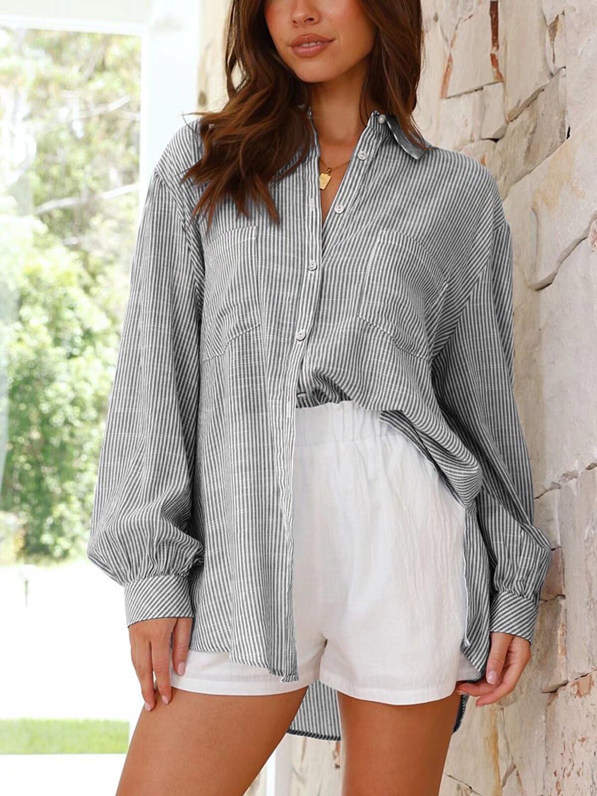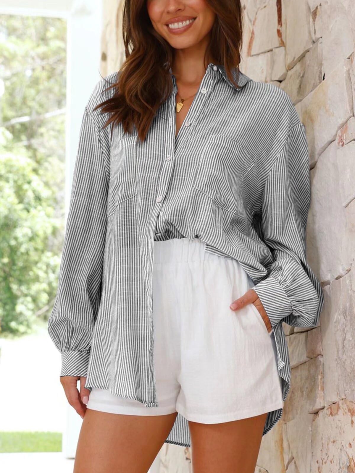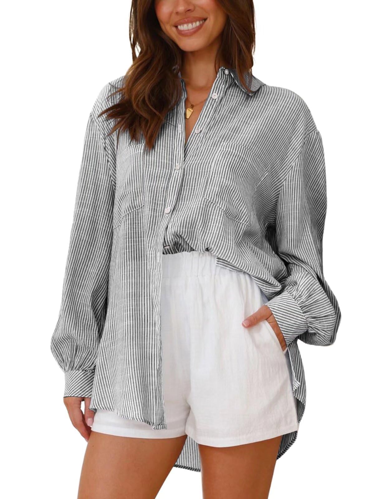 | BWQ Women's Striped Boyfriend Shirt | Black | Medium | 1 |