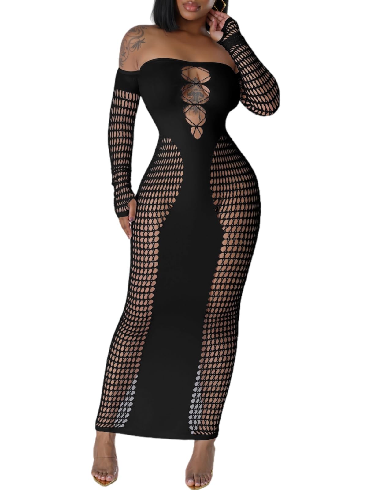 See-Through Fishnet Maxi Dress Black Small-Large 2