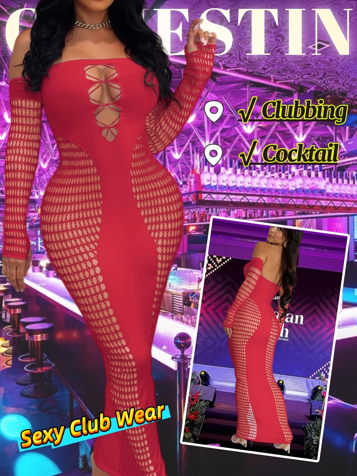 See-Through Fishnet Maxi Dress Red Small-Large 9