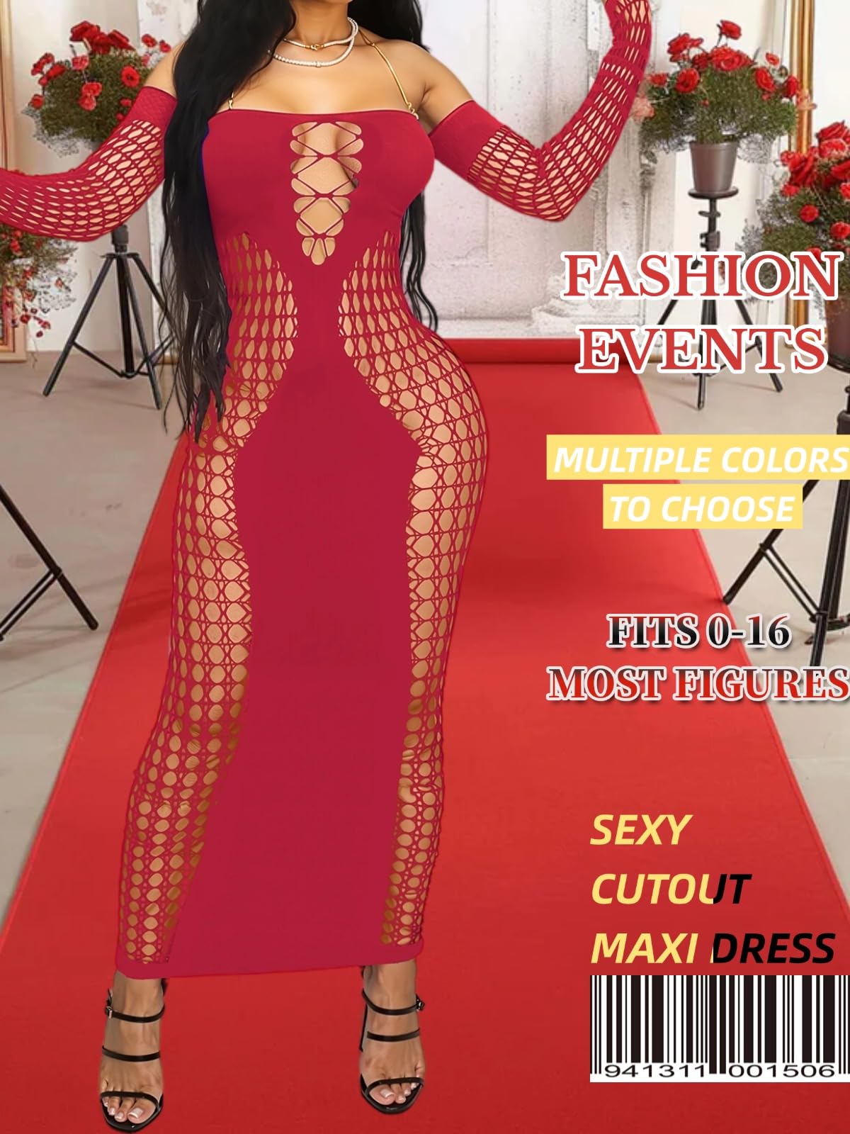 See-Through Fishnet Maxi Dress Red X-Large-XX-Large 6