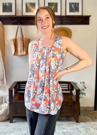 Floral Tank Tops for Women 02-floral Orange Small 2