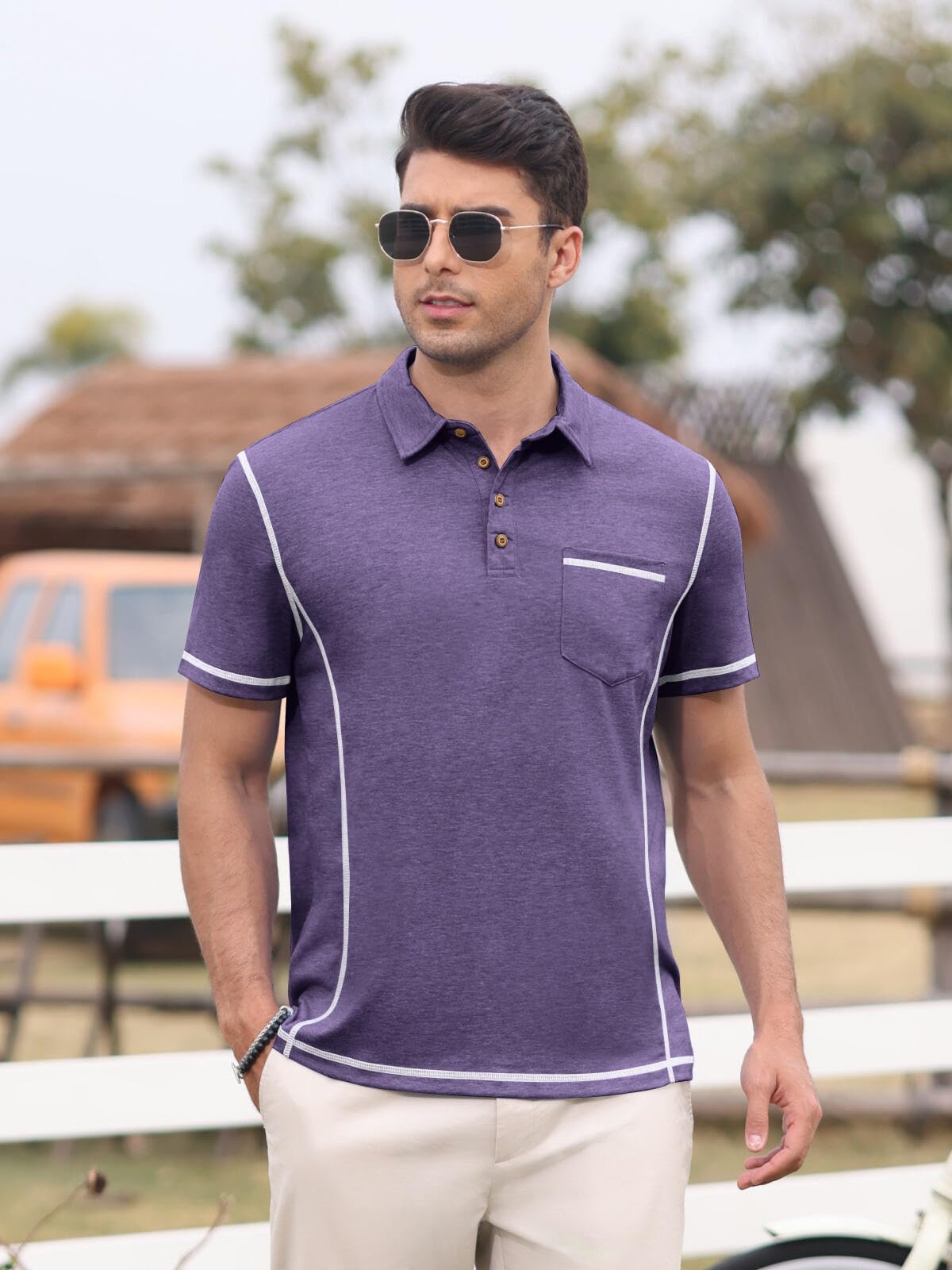 | Men's Polo Shirts Short Sleeve | Purple | 3X-Large | 7 |