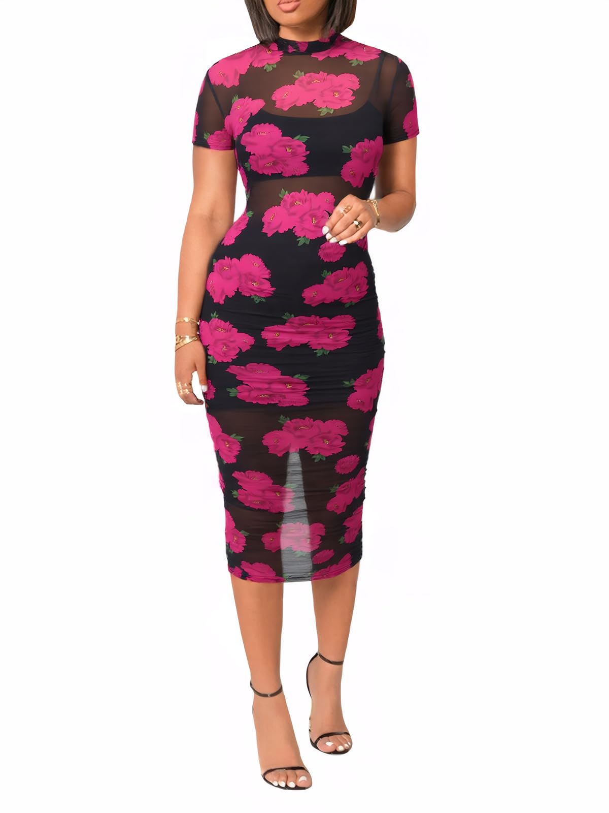 | printed mesh midi bodycon dress | Floral Rose | Medium | 2 |