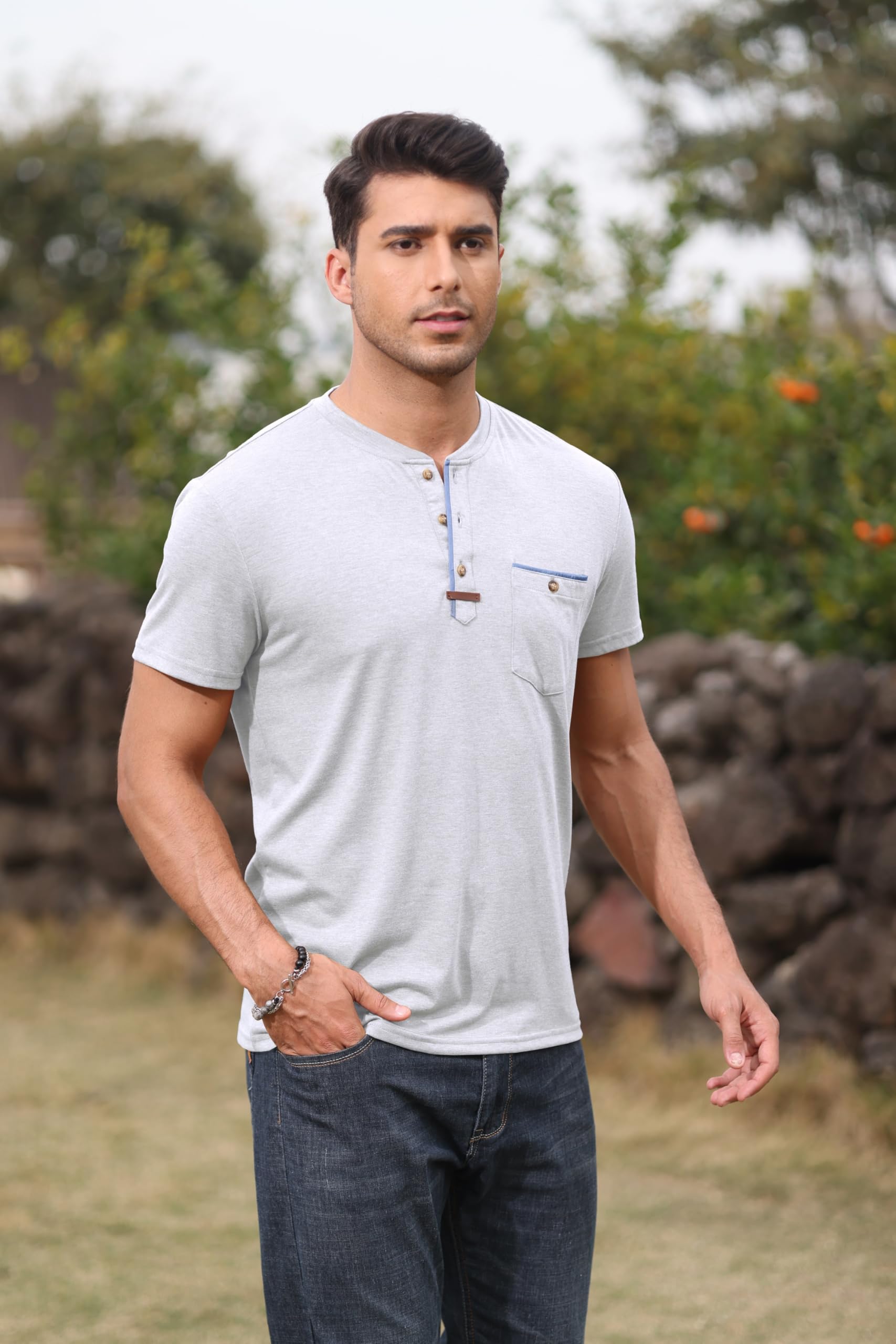 | Mens Henley Shirts | Grey | 3X-Large | 2 |