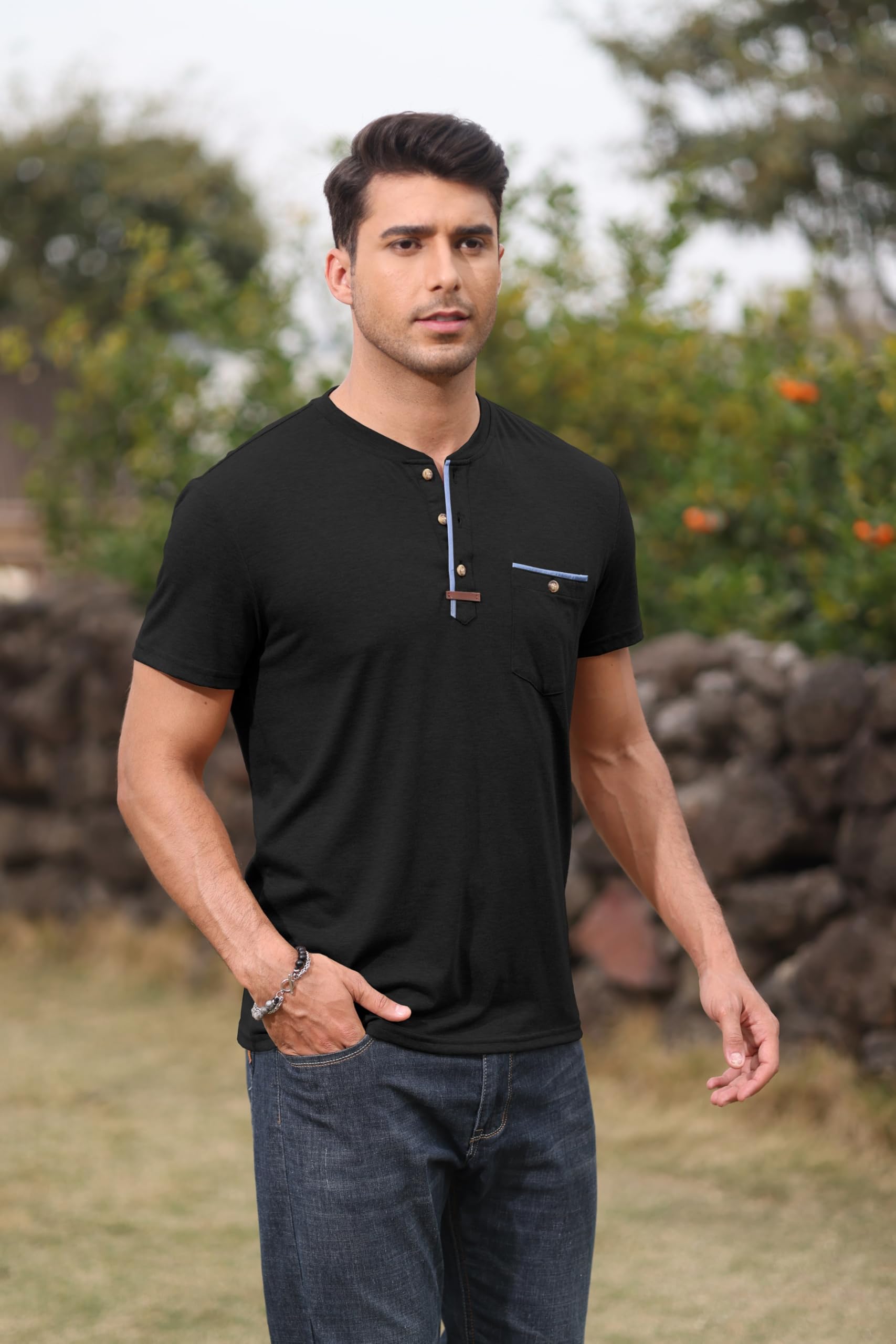 | Mens Henley Shirts | Black | Medium | 2 |