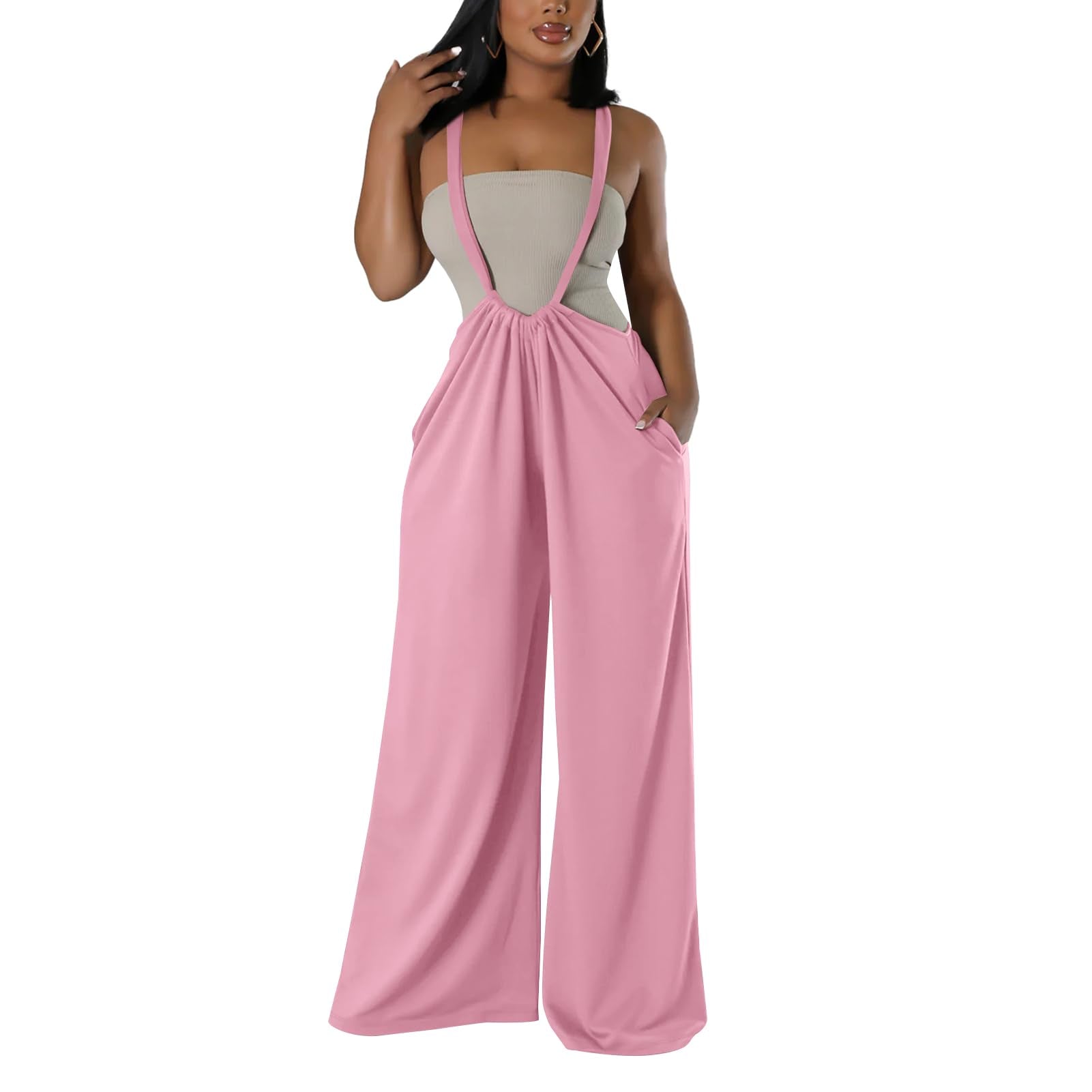 Loose Sleeveless Suspender Overalls Pink Large 6