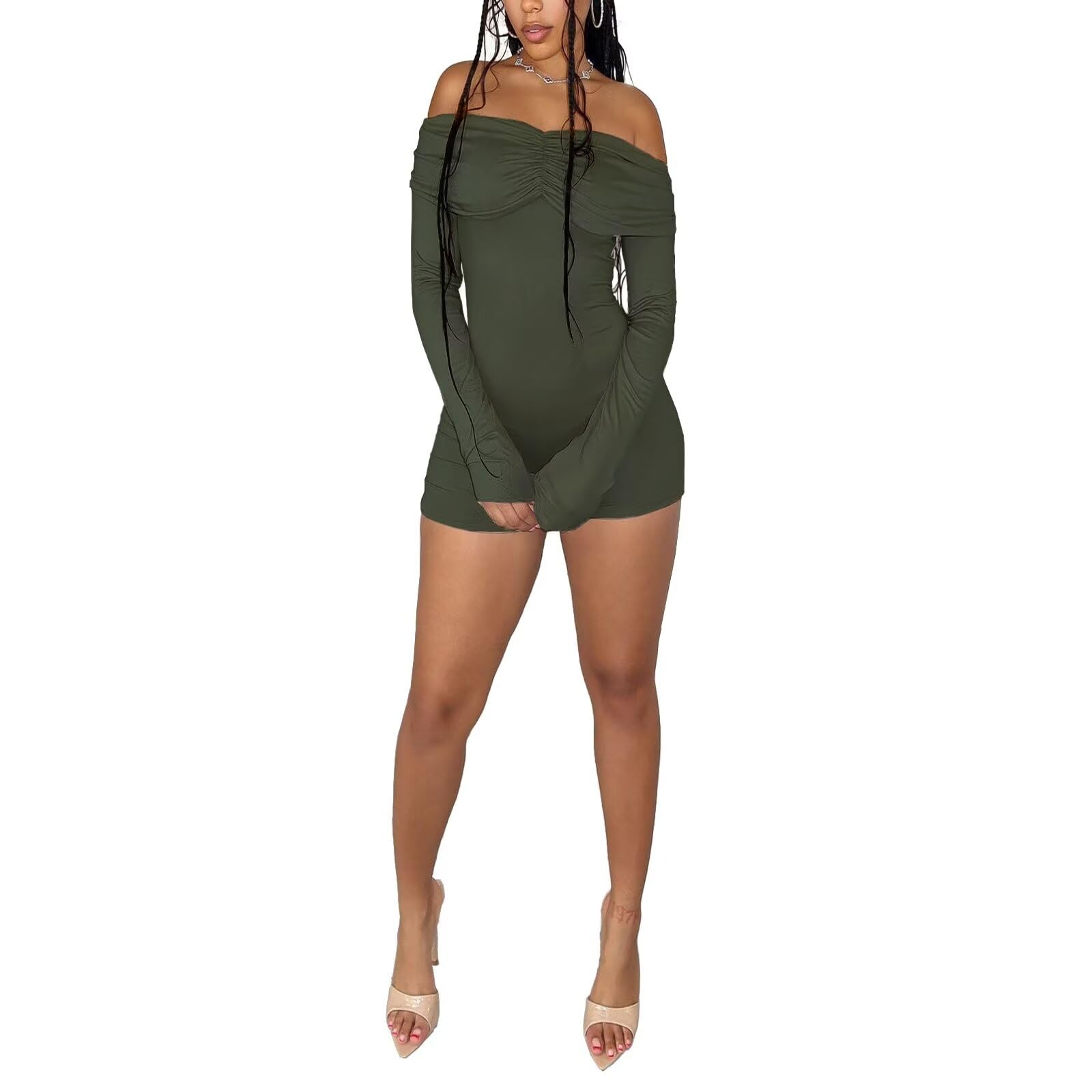| Off Shoulder Ruched Shorts Jumpsuit | Green | Medium | 1 |