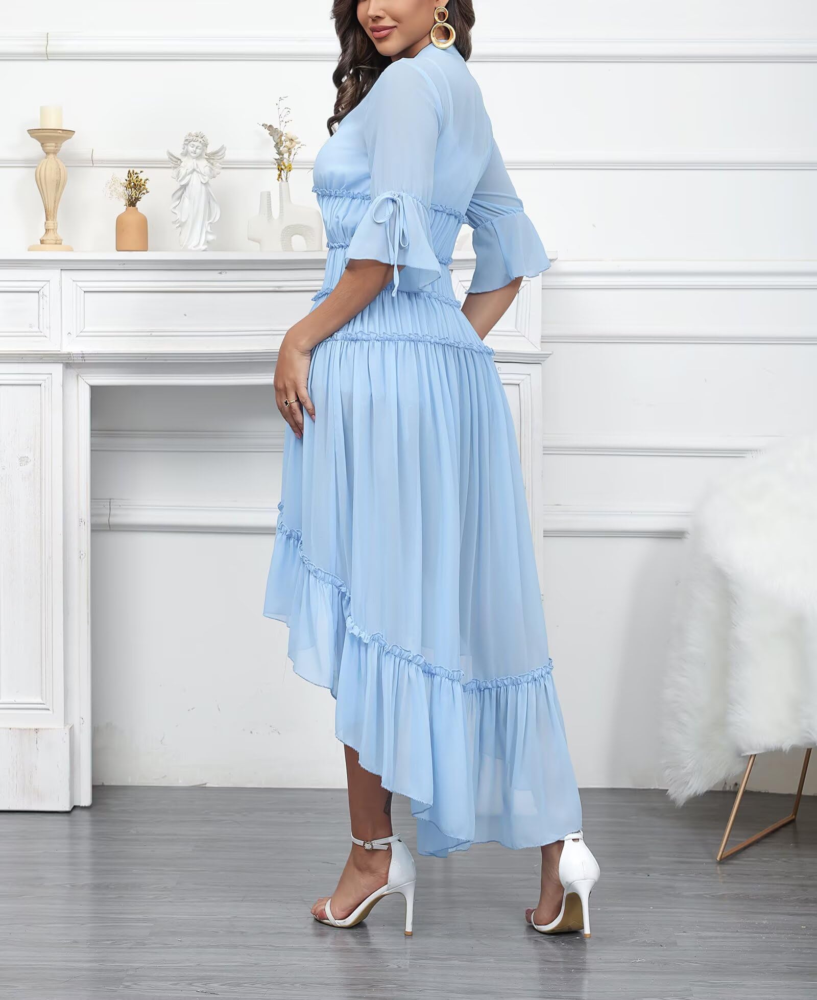 | v neck button down shirt dress | Sky Blue | Medium | 2 |