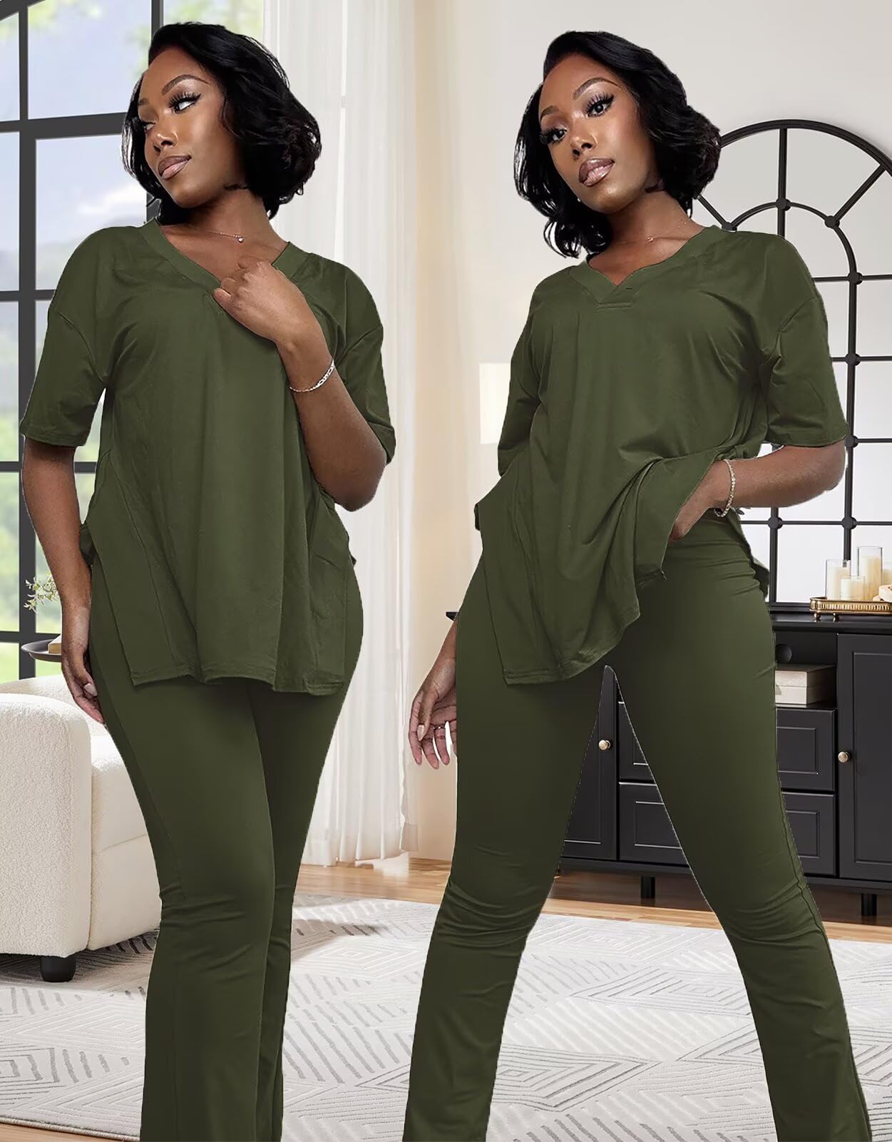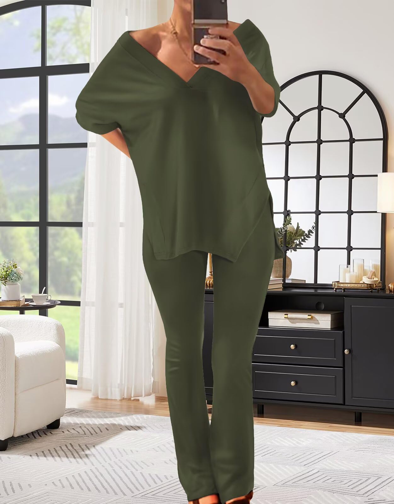 Womens Casual Two Piece Pants Sets Army Green Medium 2