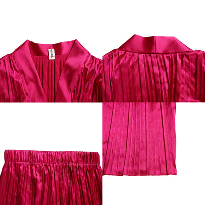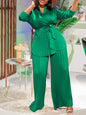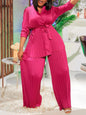 Pleated Long Sleeve Shirt and Pants Set with Belt