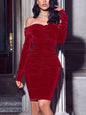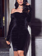 Feature: Long sleeve, off-shoulder, backless, velvet, bodycon, slim fit, sexy, ruched, midi dresses.