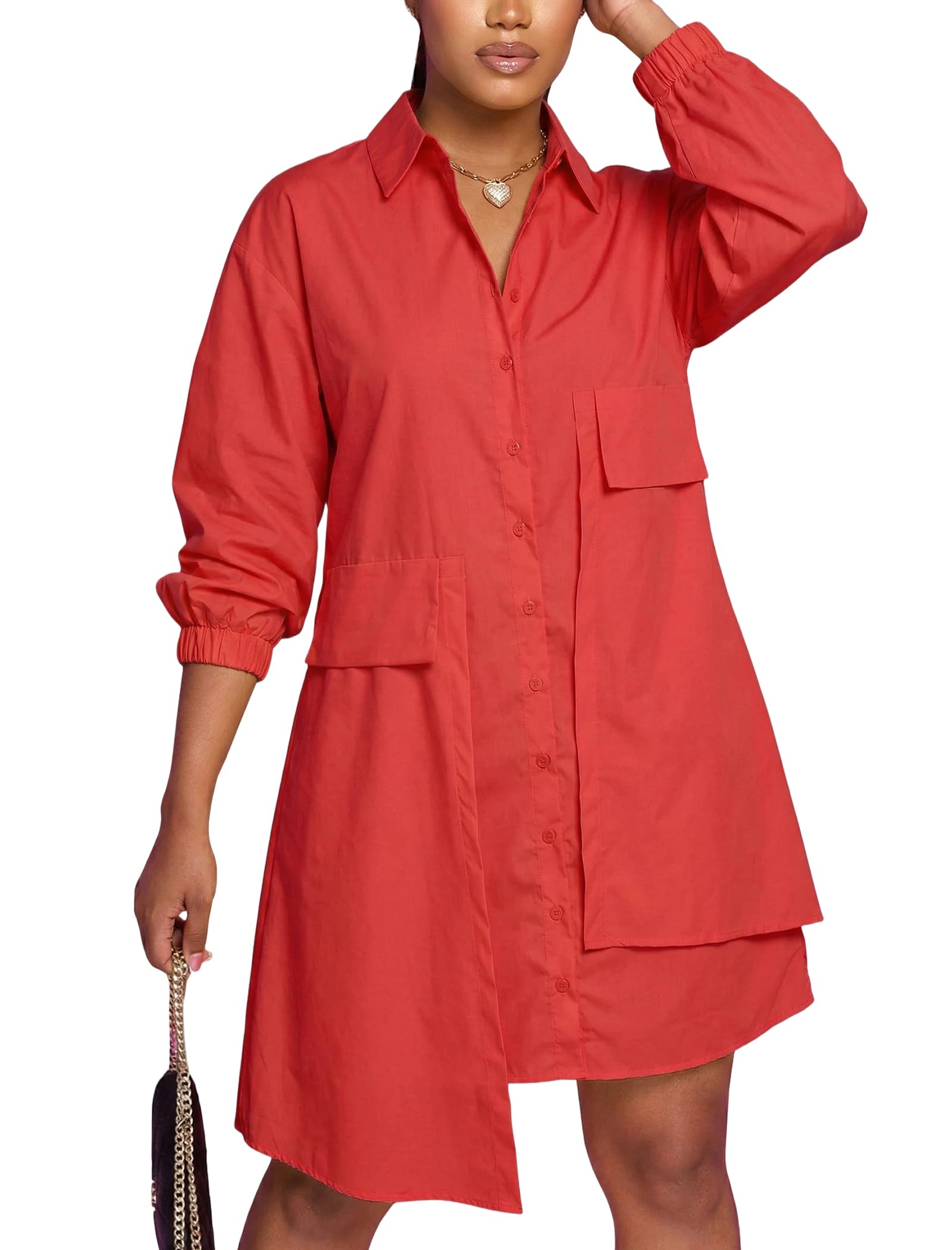 | long sleeve shirt dress | Red | XX-Large | 2 |