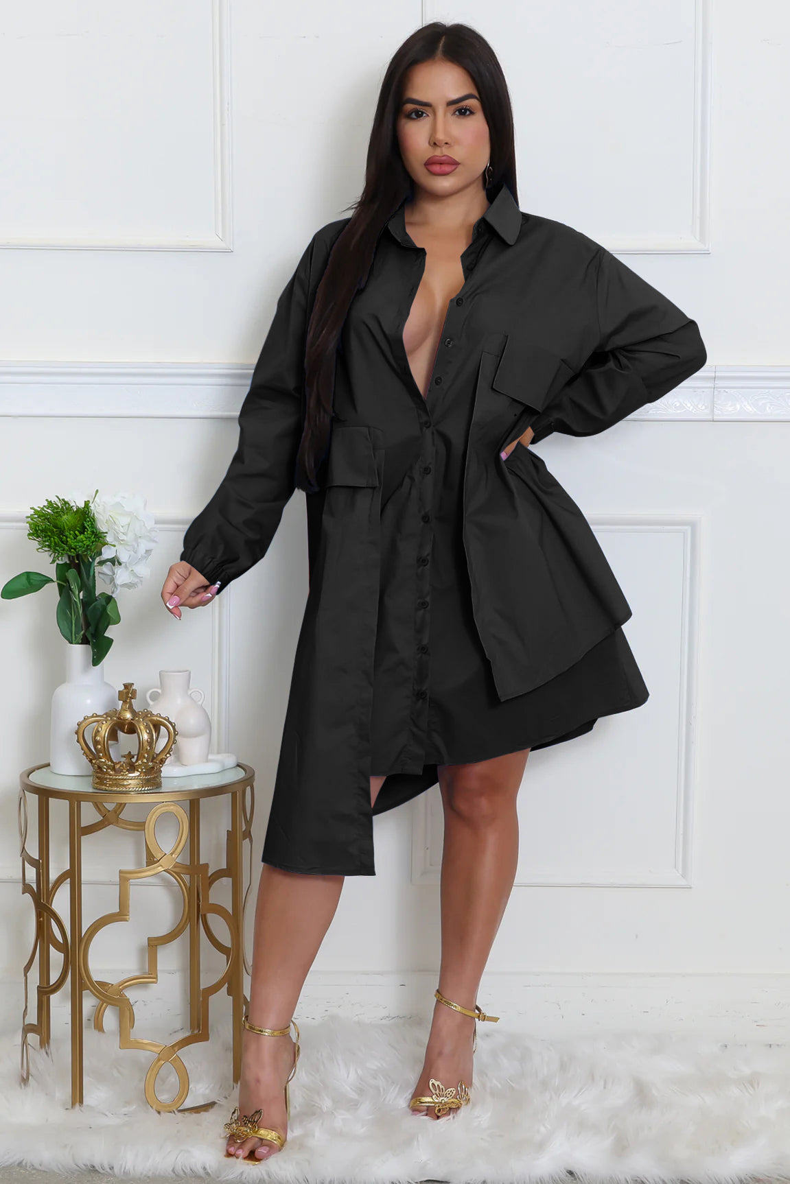 | long sleeve shirt dress | Black | XX-Large | 5 |