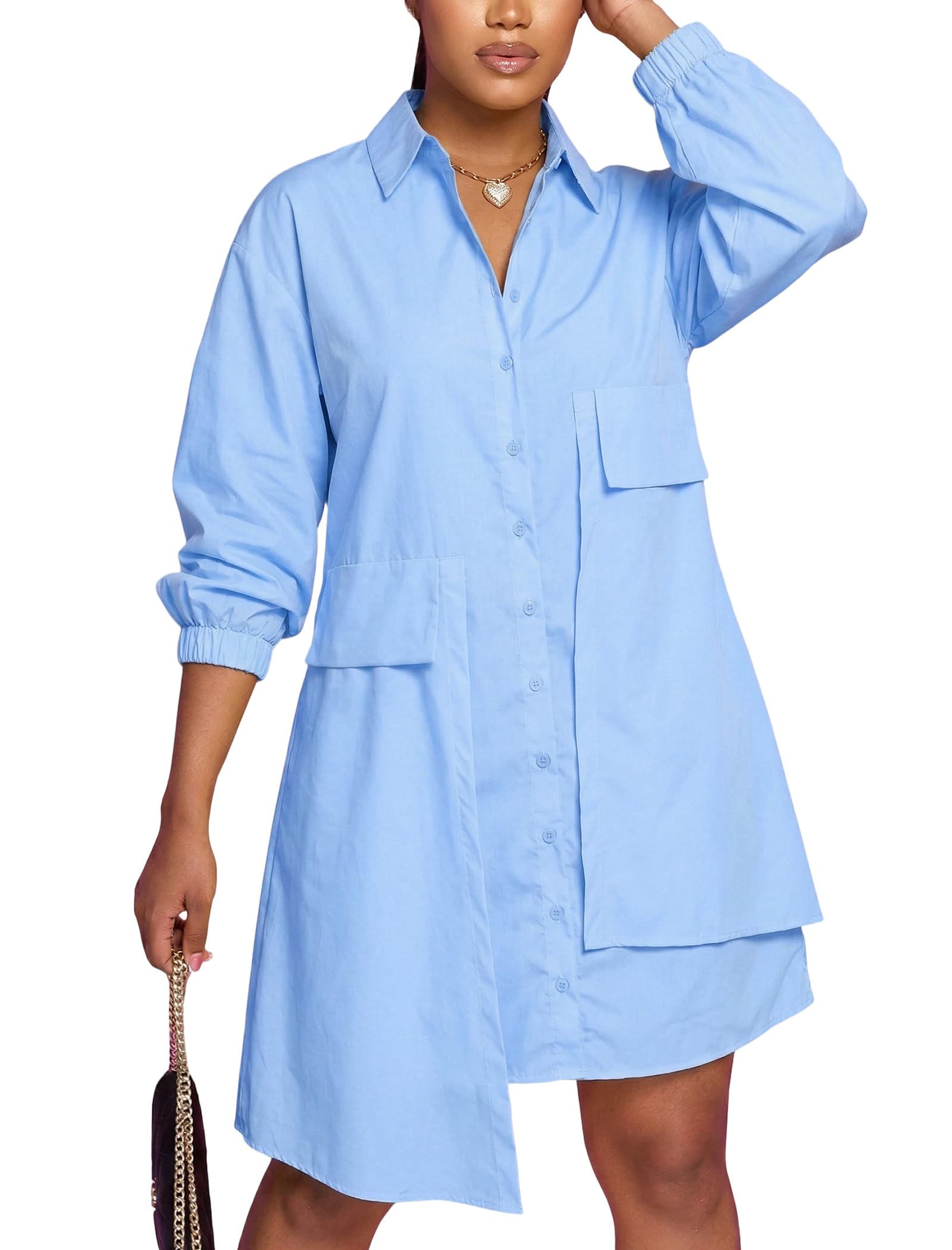 | long sleeve shirt dress | Light Blue | XX-Large | 3 |