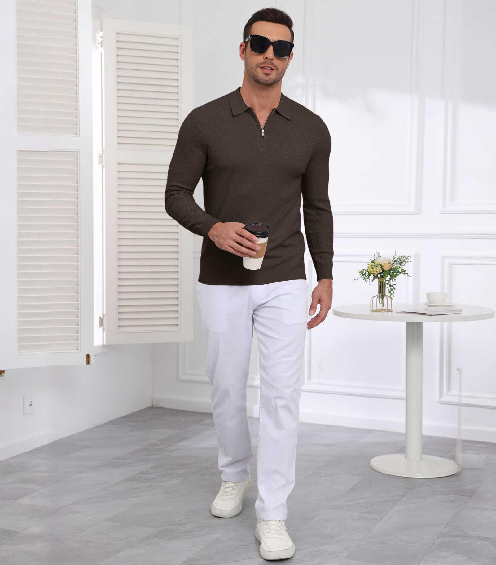 | Men's Slim Fit Polo Sweater Lightwe | Brown | Large | 5 |