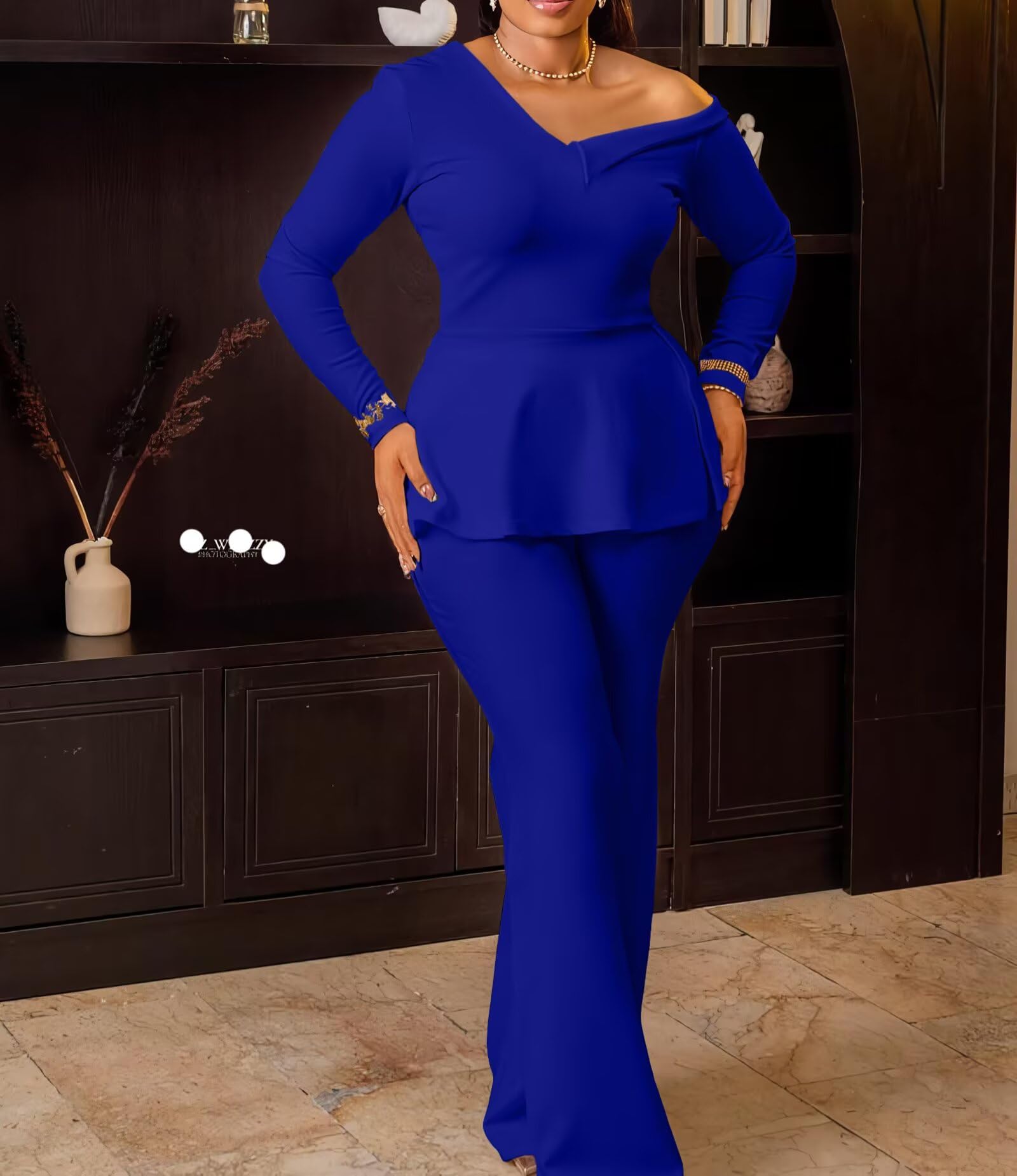 | one shoulder 2 piece pant set | Royal Blue | Medium | 3 |