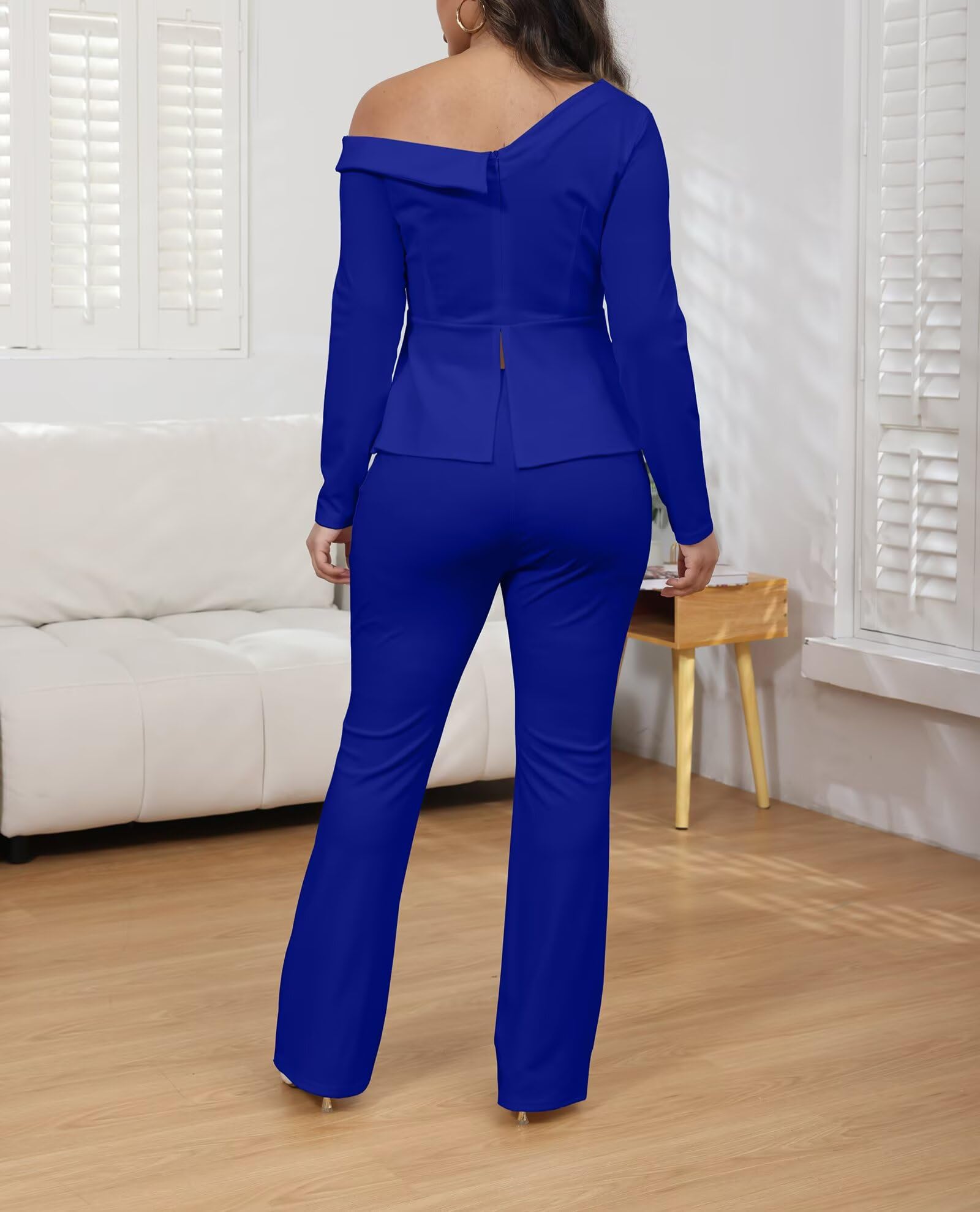 | one shoulder 2 piece pant set | Royal Blue | Large | 2 |