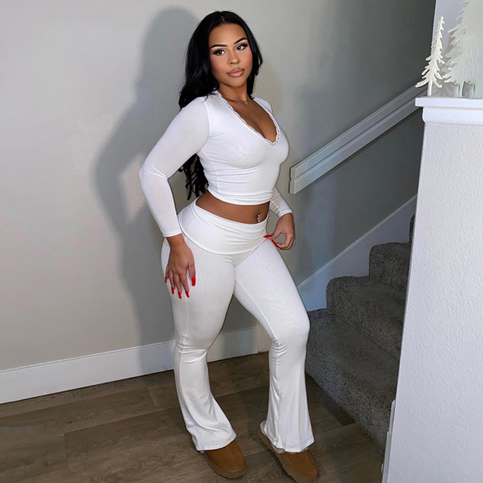 2 Piece Set for Women Casual White Large 5