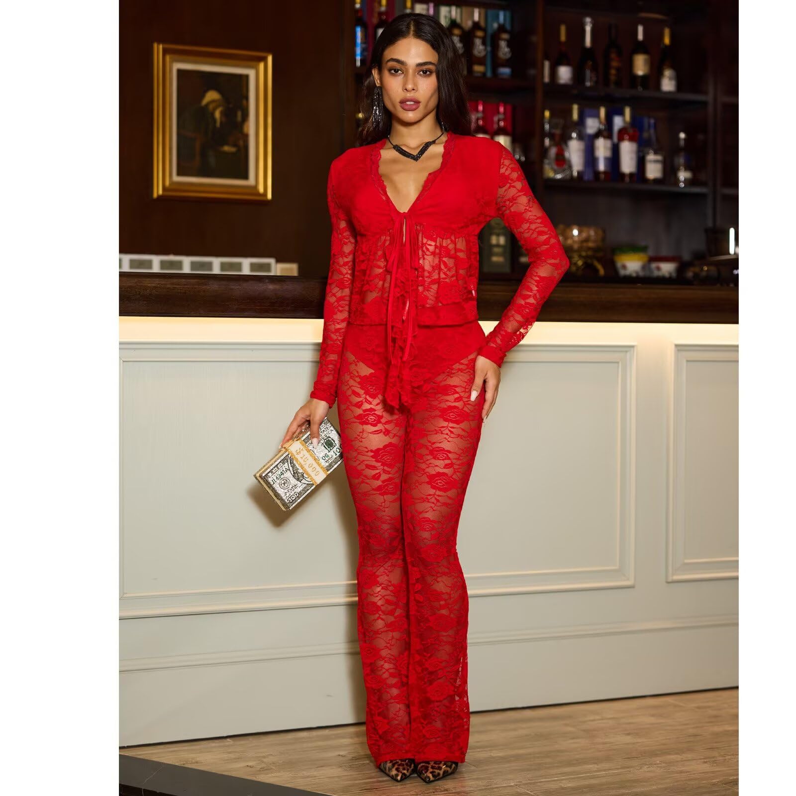 | Womens Lace Club 2 Piece Outfits | Red | Small | 1 |