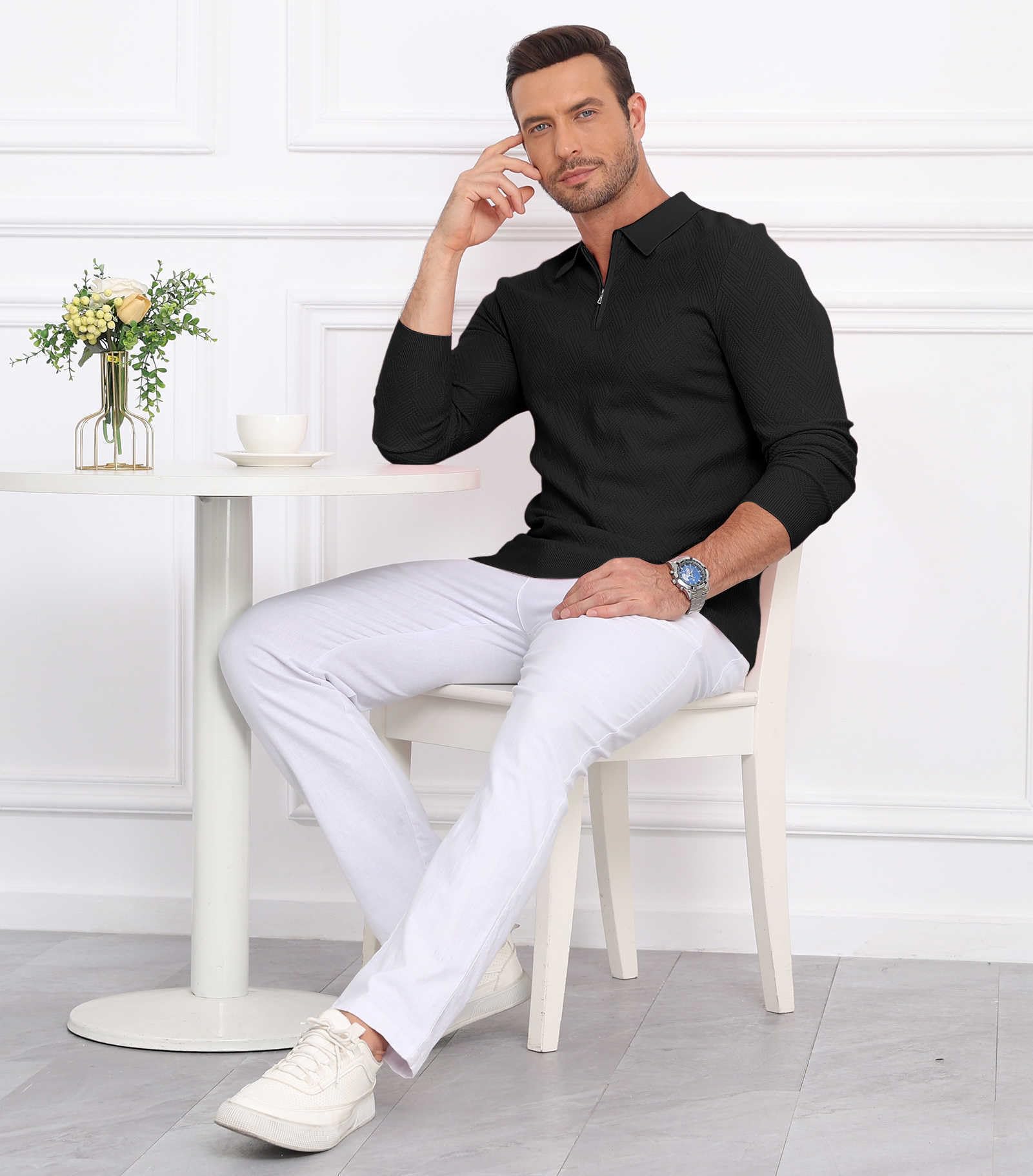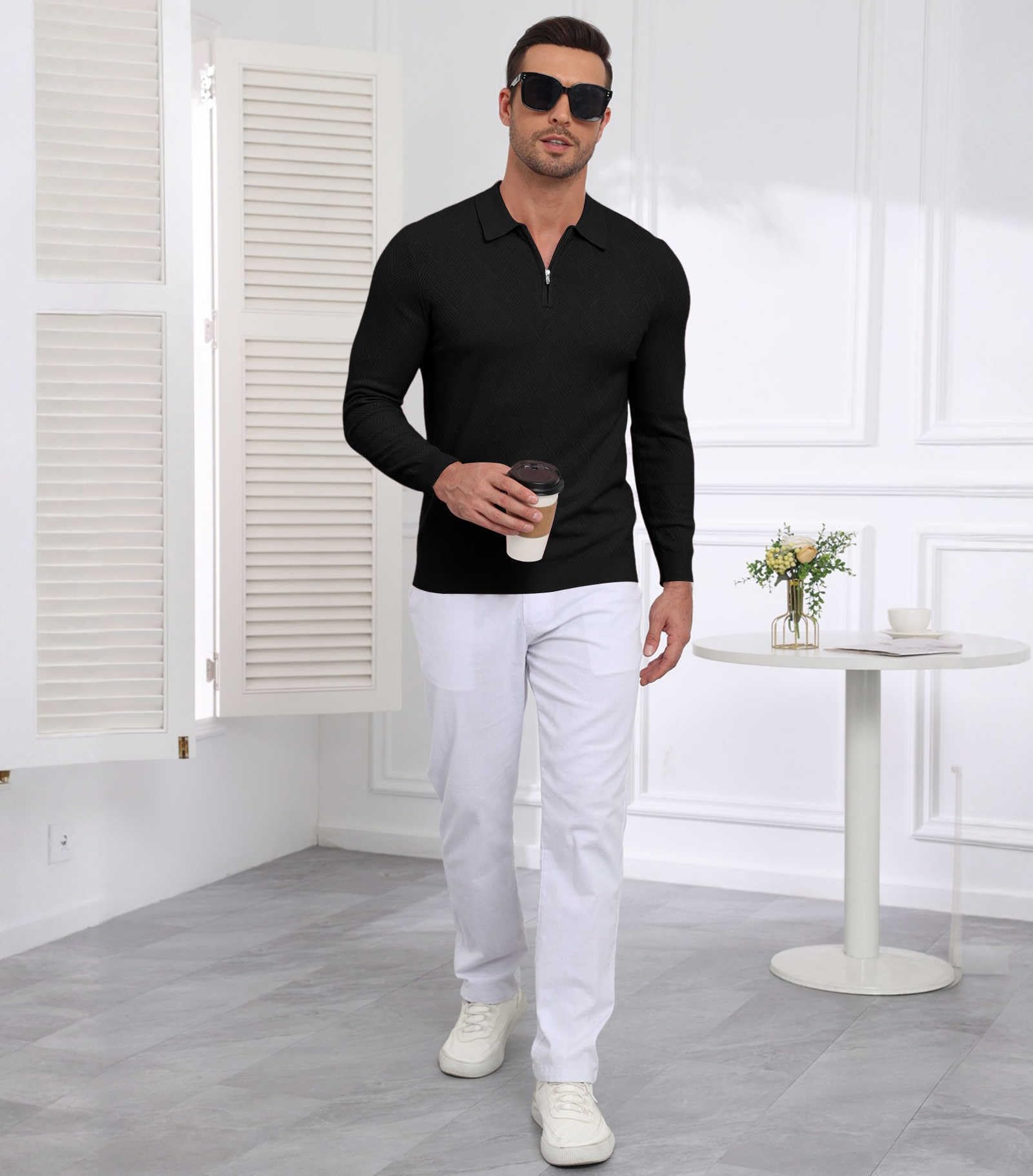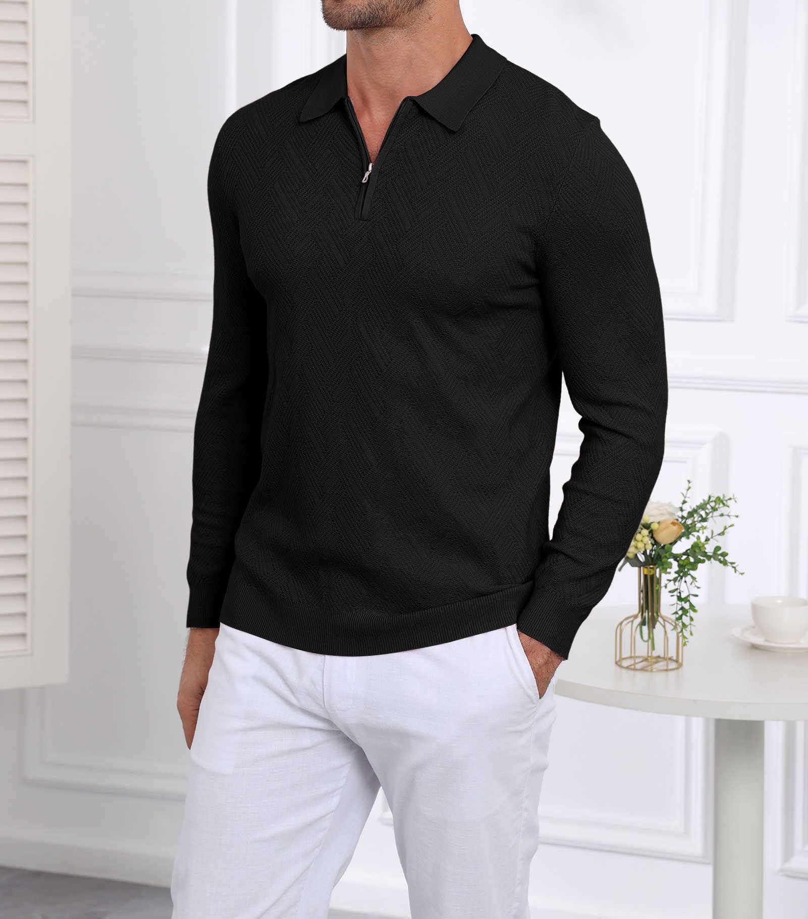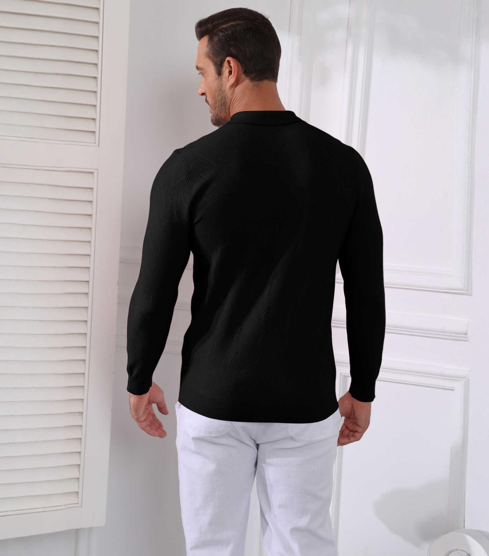 | Men's Slim Fit Polo Sweater Lightwe | Black | Large | 5 |