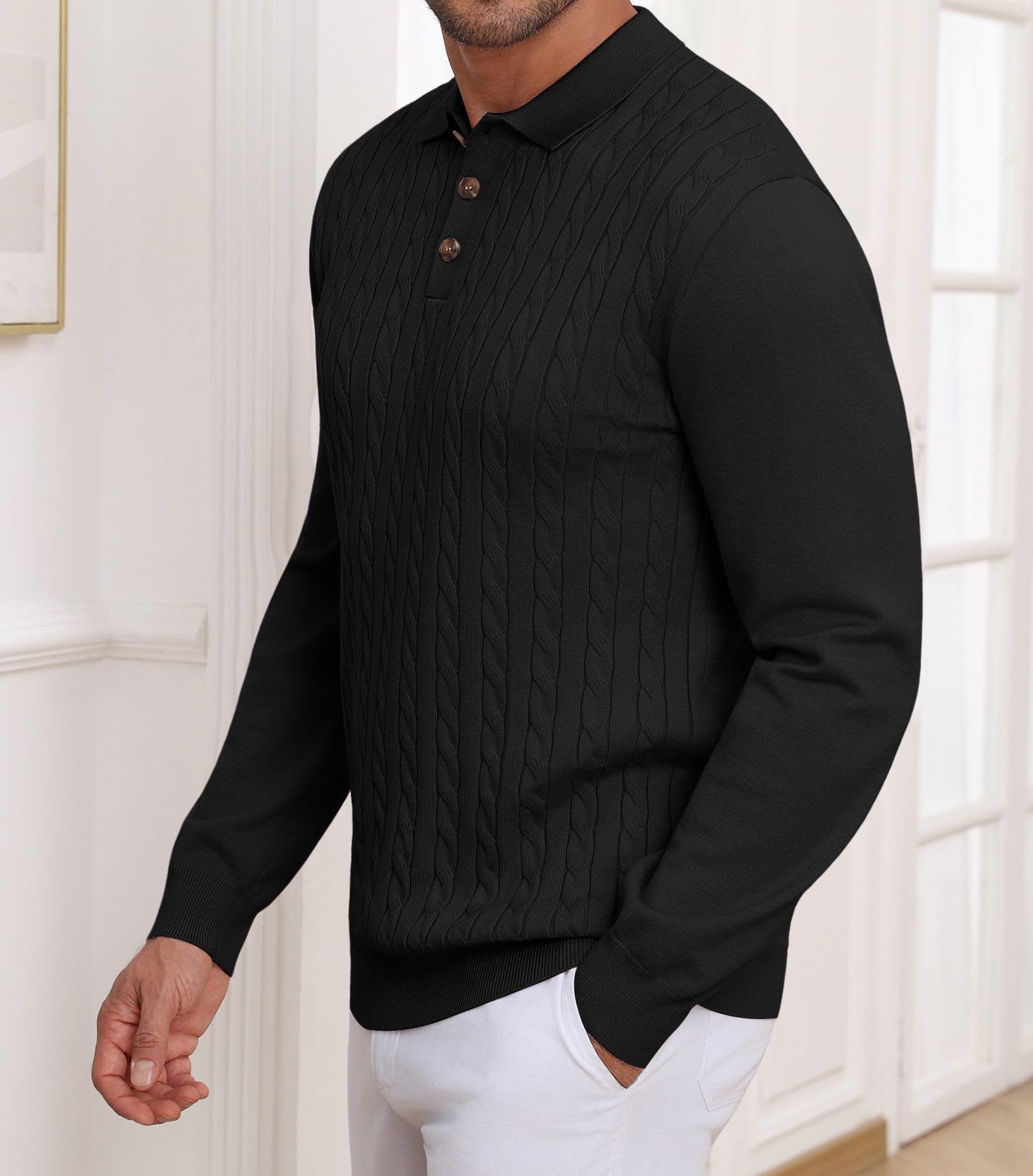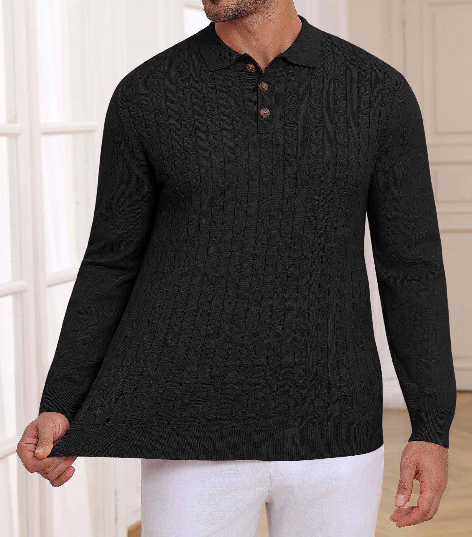 | Men's Polo Sweater Soft Warm Casual | Black | Medium | 3 |