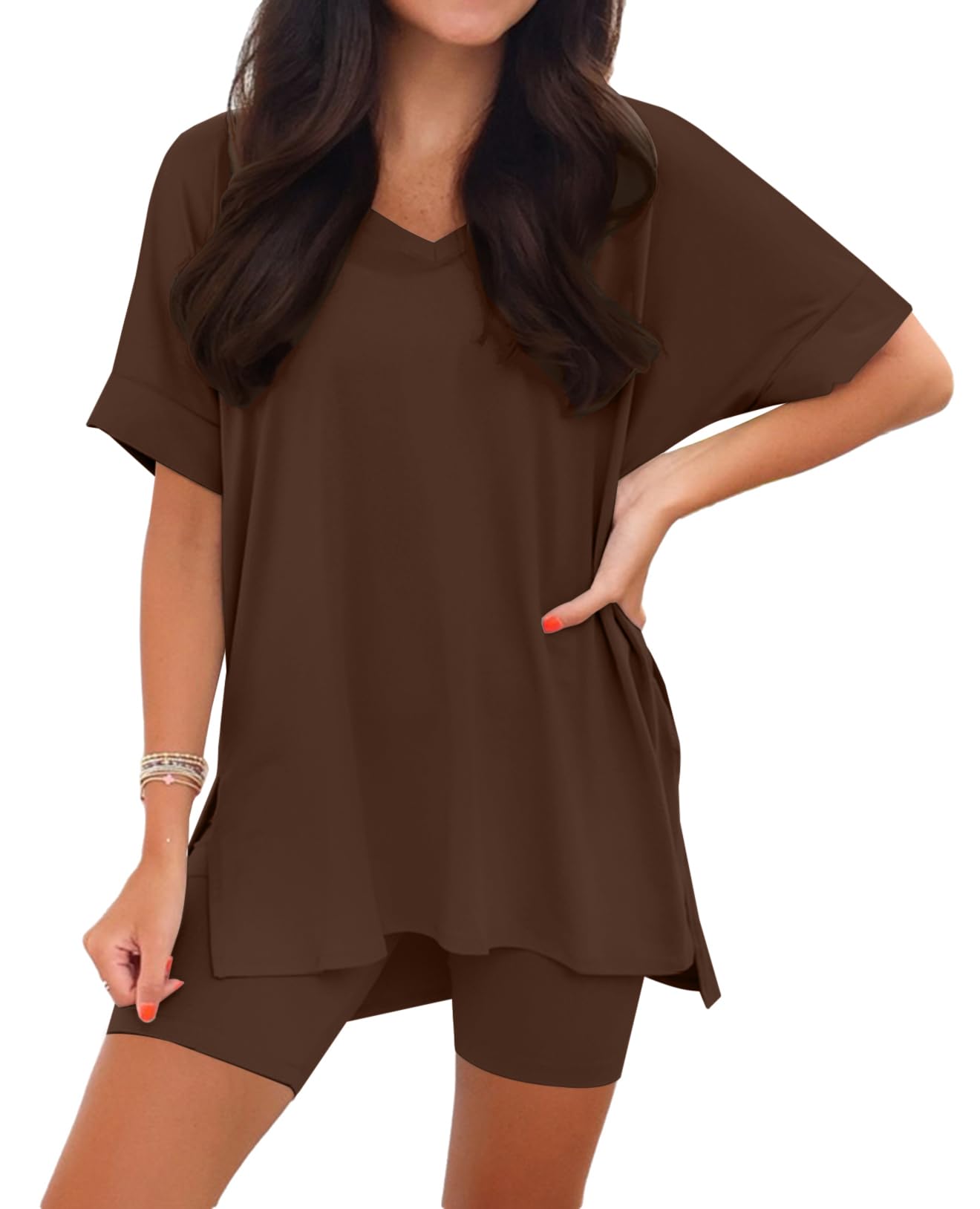 | Womens 2 Piece Summer Shorts Set | Coffee | Small | 2 |