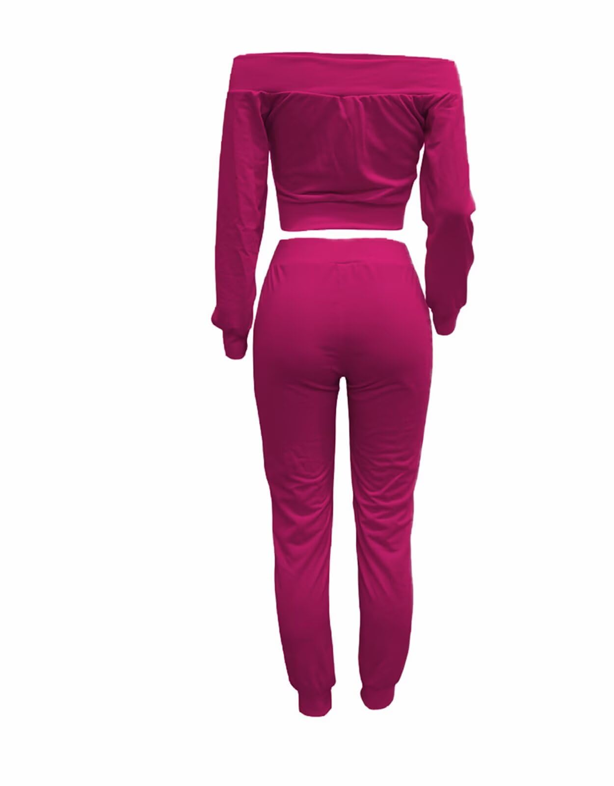 Womens 2 Pcs Off Shoulder Sweatsuit Rose Red Large 2