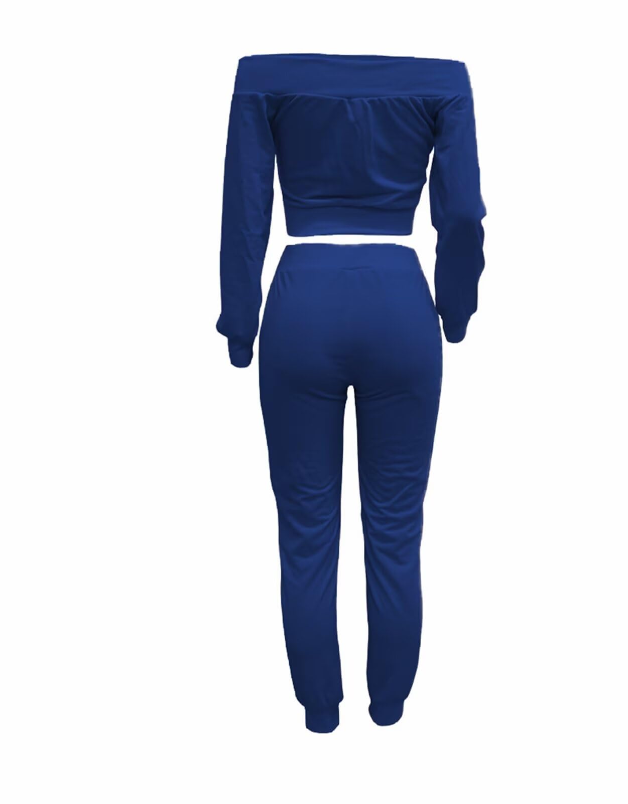 Womens 2 Pcs Off Shoulder Sweatsuit Royal Blue Small 2