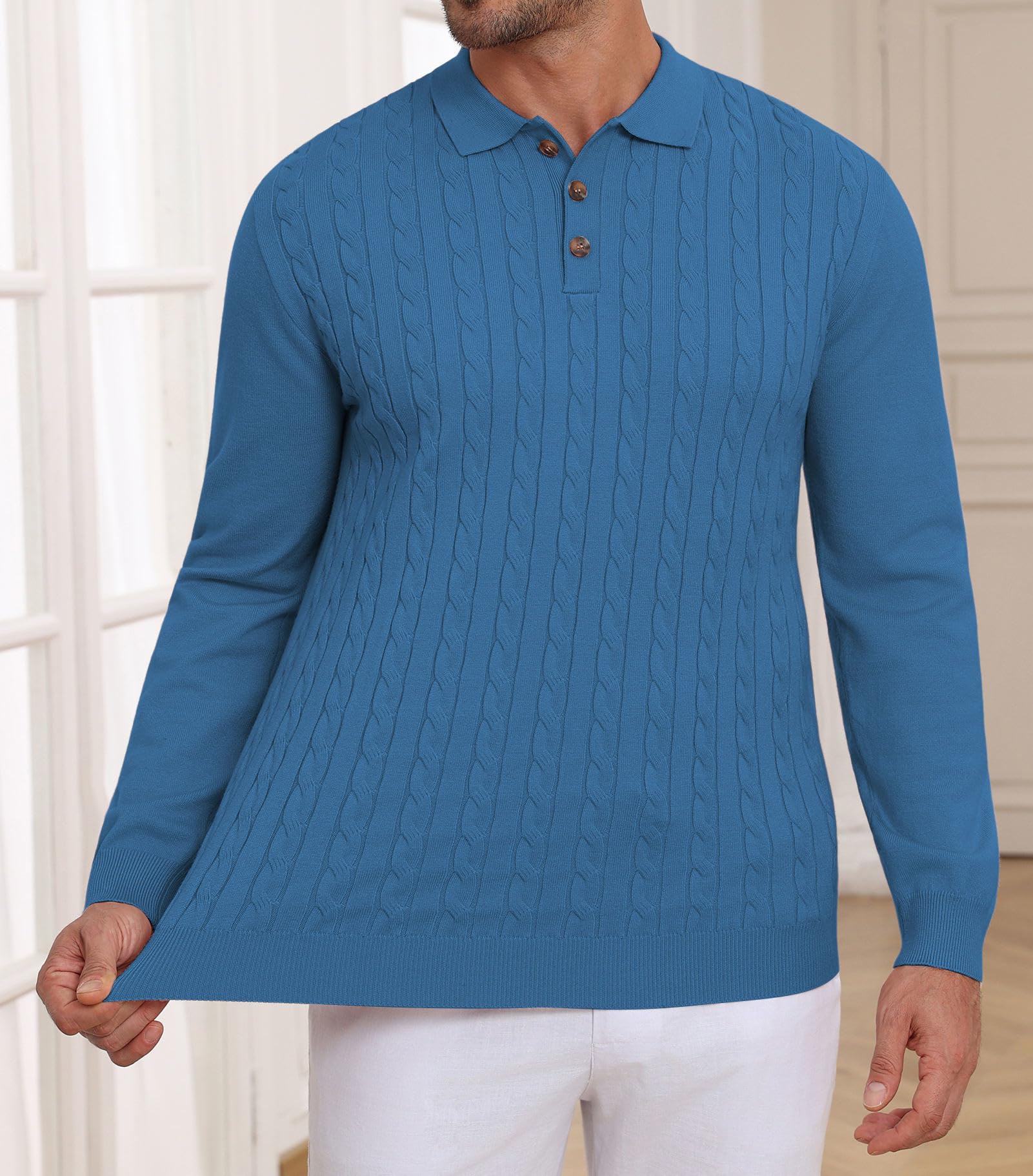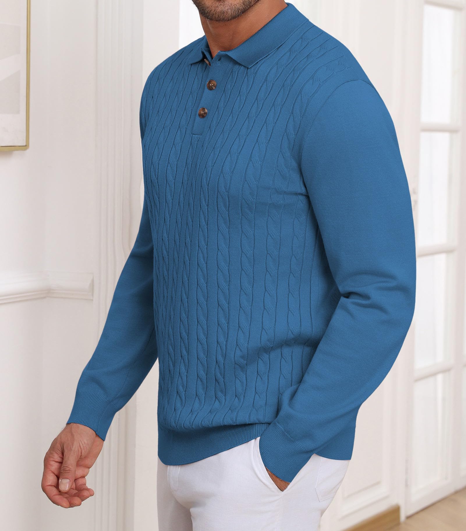 Men's Polo Sweater Soft Warm Casual Dark Blue Large 5